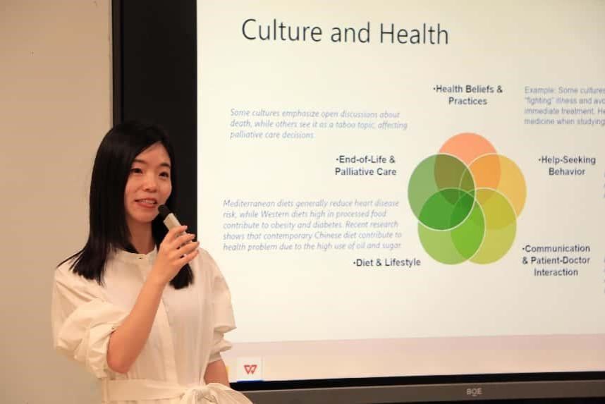 刘佳博士的讲座从个人背景与职业转型、文化与健康关系、健康与国际关系、跨学科研究与实践、海外学习与工作体验等方面展开,语言准确精炼、诙谐轻松。