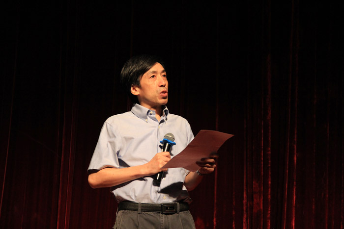——开场短剧后张剑经理上台致辞,向远道而来的剑桥学子表示欢迎,并号召前来观演的师生们从经典戏剧等文艺作品中获取对中西文化更深刻的了解。