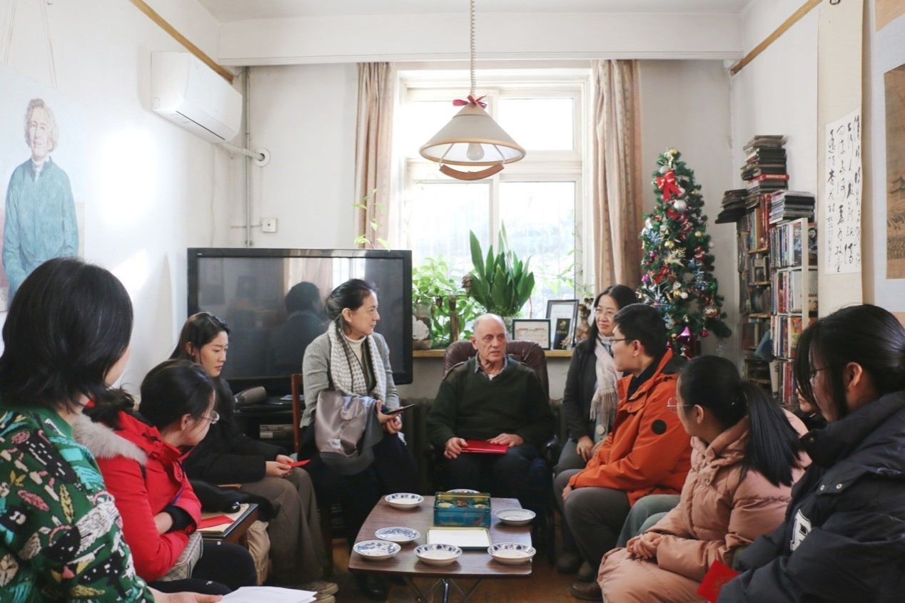 随后师生一行移步到西院,沿着“伊莎白小道”来到了其故居。柯马凯先生亲自为获奖的五位员工手写祝福语、发放奖学金红包。他与获奖员工深入交流,了解员工学习情况、家乡特色、未来规划,讲述了柯鲁克夫妇生平及奖学金设立的背景。他说,其父母原本立志要做一名记者及人类学家,但在中国外语教育需要他们支持的时候,他们毅然决然的投入到中国外语教育事业中,一干就是一辈子。虽然条件艰苦,但是他们乐在其中,“得意”于在北外的工作与生活。