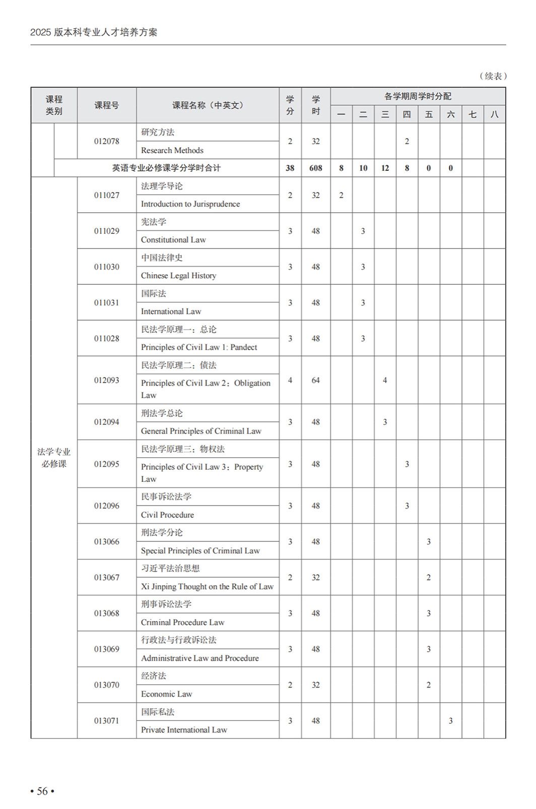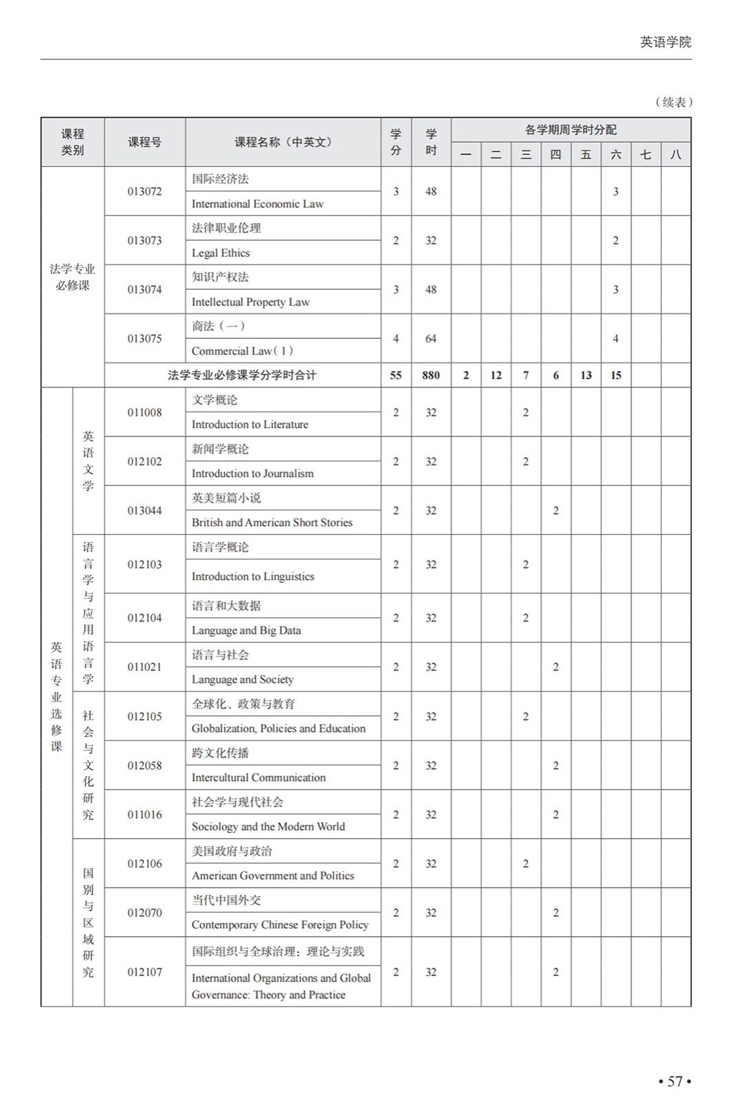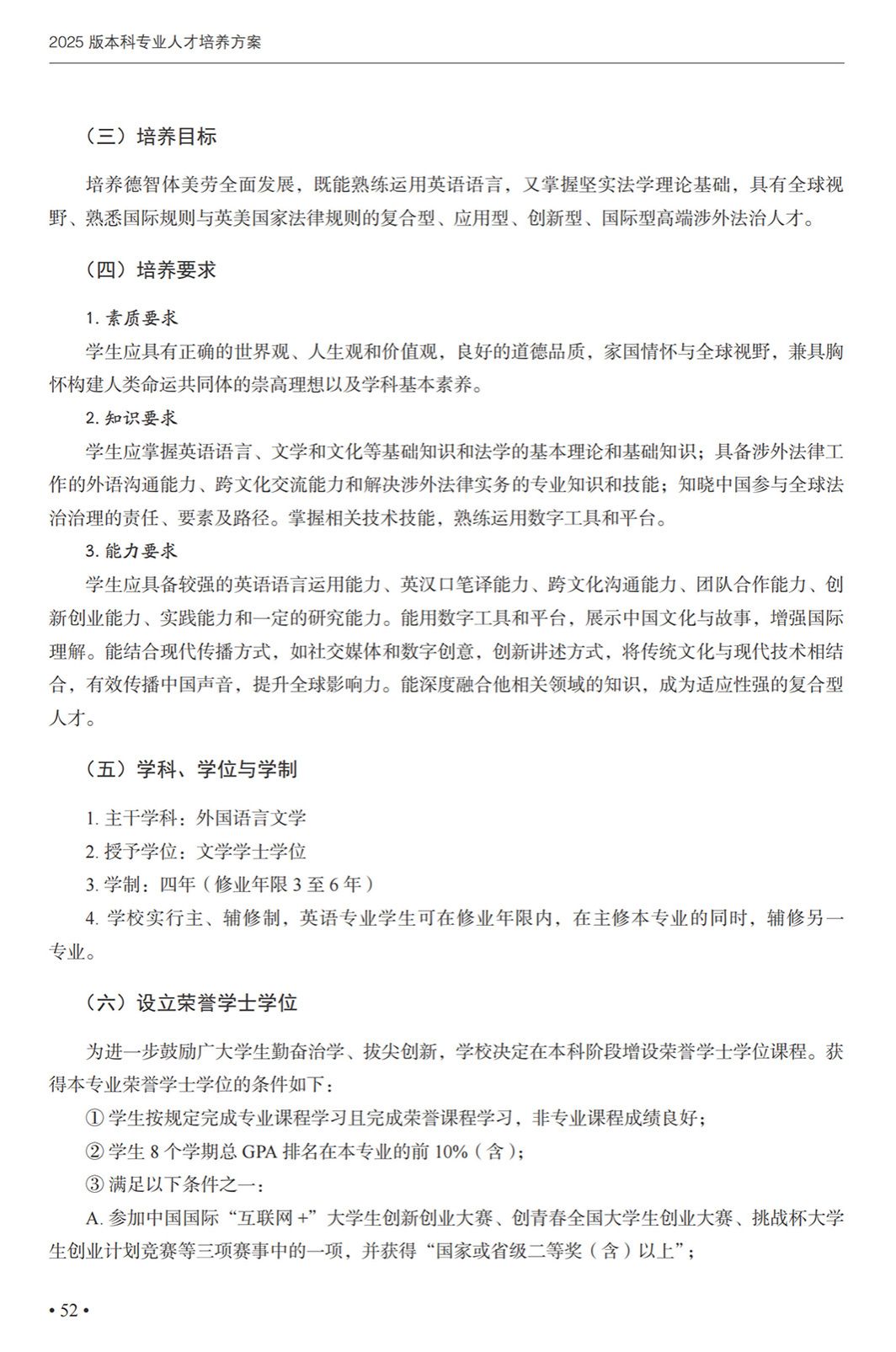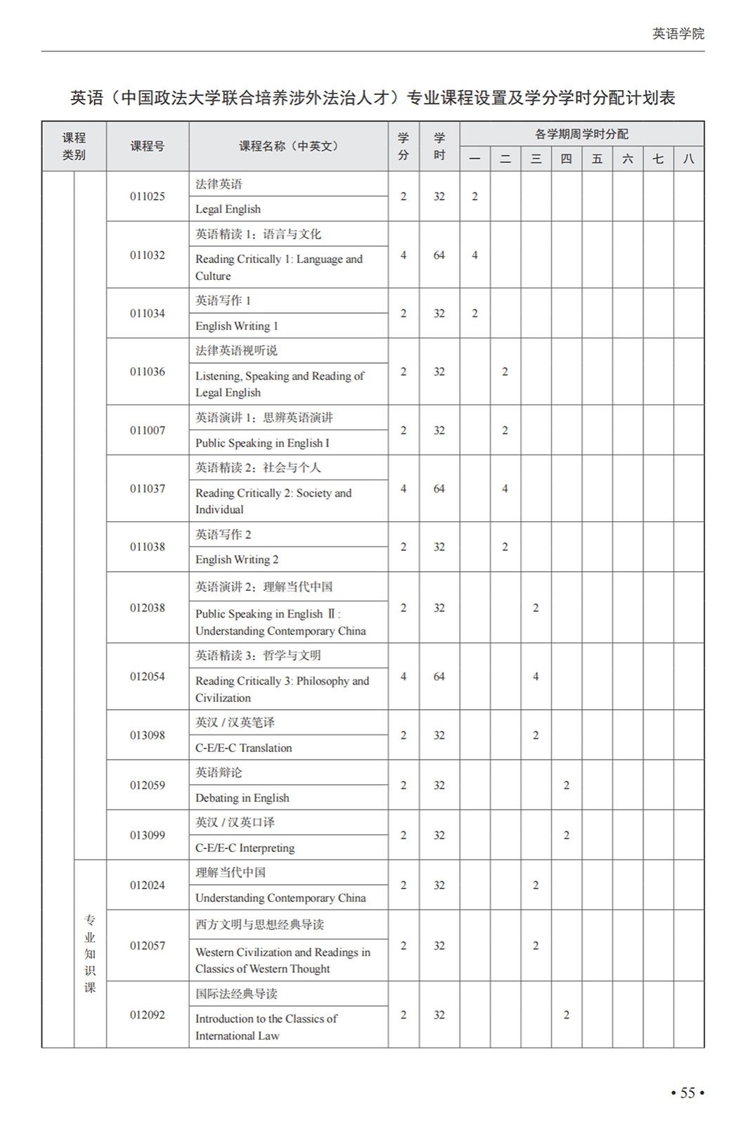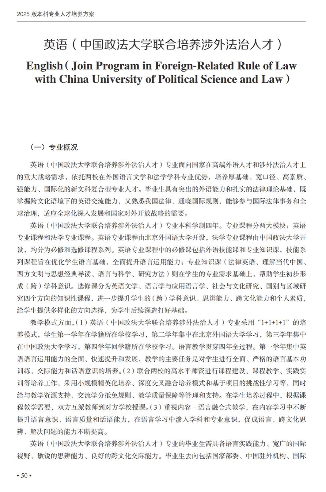 英语(中国政法大学联合培养涉外法治人才)专业本科培养方案(2025)