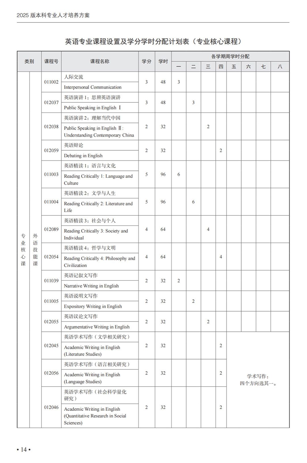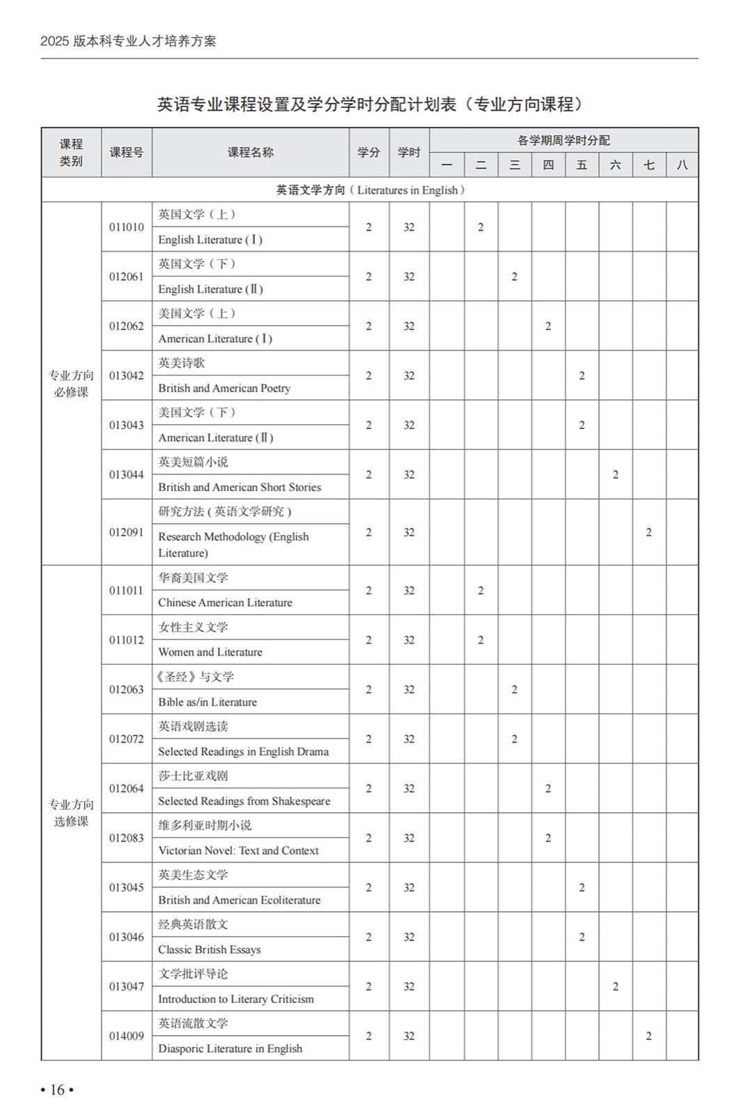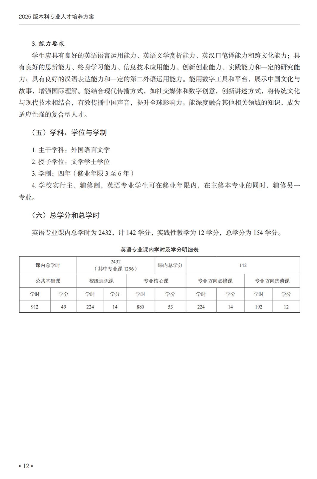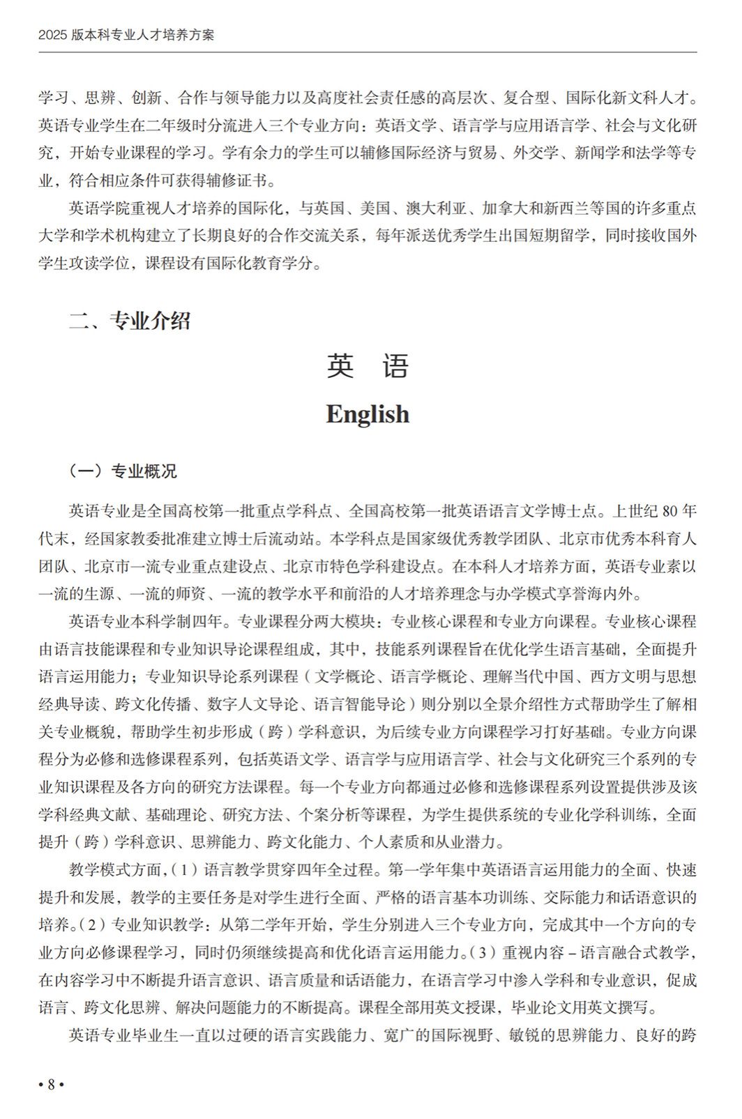 英语专业本科培养方案(2025)