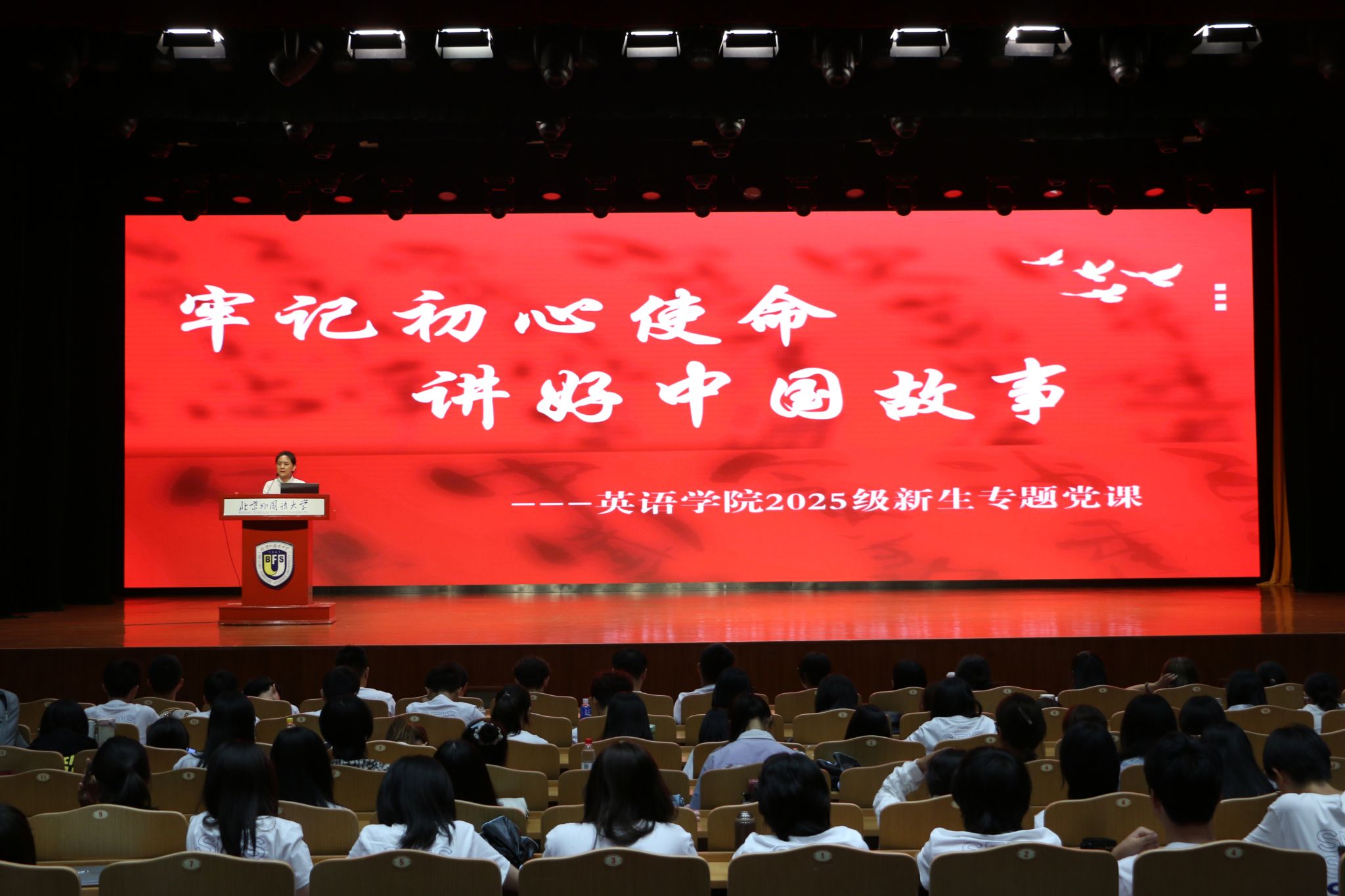 9月5日下午,在威廉体育2025级新生开学典礼最后,公司党总支书记殷悦以“牢记初心使命,讲好中国故事”为题,为全体2025级本科生及研究生新生讲授专题党课。
