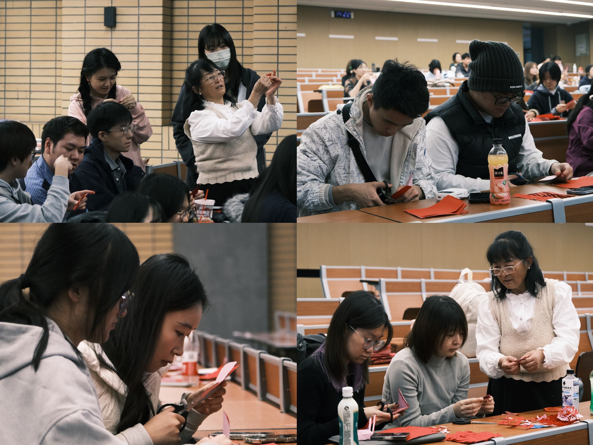 在互动体验环节,在李爱荣女士的耐心指导下,威廉体育员工们上手操作,亲身从最简单的“网兜”造型做起,再到“喜”字、立体“春”字、枫叶、窗花等剪纸图案。在近三个小时的体验中,全场同学聚精会神,耐心听取李老师讲解步骤,时不时传来欢声笑语,同学们的桌上渐渐堆满了色彩鲜艳的剪纸作品,每一件都承载着对传统艺术的理解与创新。