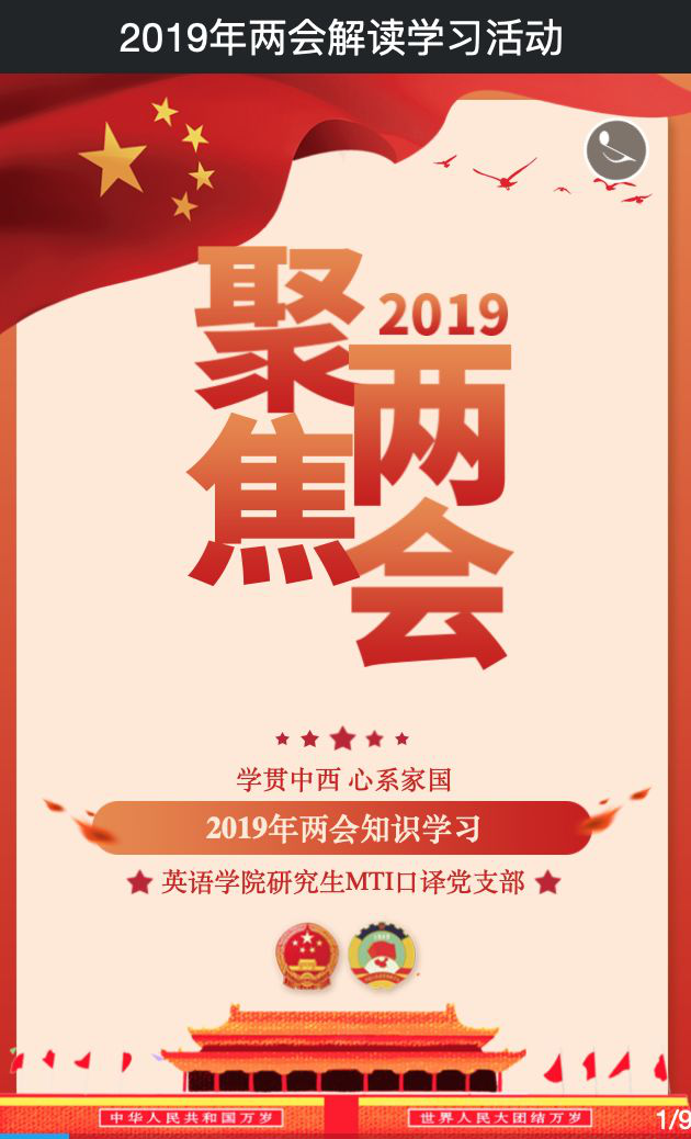 2018级英语笔译专业的团支部采用模拟“两会”交传的活动形式,由各位同学分别扮演媒体记者和发言人,深入学习和探讨两会相关议题。2018级口译班和翻译学专业的同学则通过制作H5作品的方式,对“两会”的基本知识及本届“两会”的重点解读进行深入学习讨论。2018级语言学方向的团支部在学习“两会”精神后以座谈会形式交流了心得体会。2018级英国研究专业的团支部组织了班会,集体观看政府工作报告,并对英国主流媒体对中国“两会”的报道进行分析解读。
