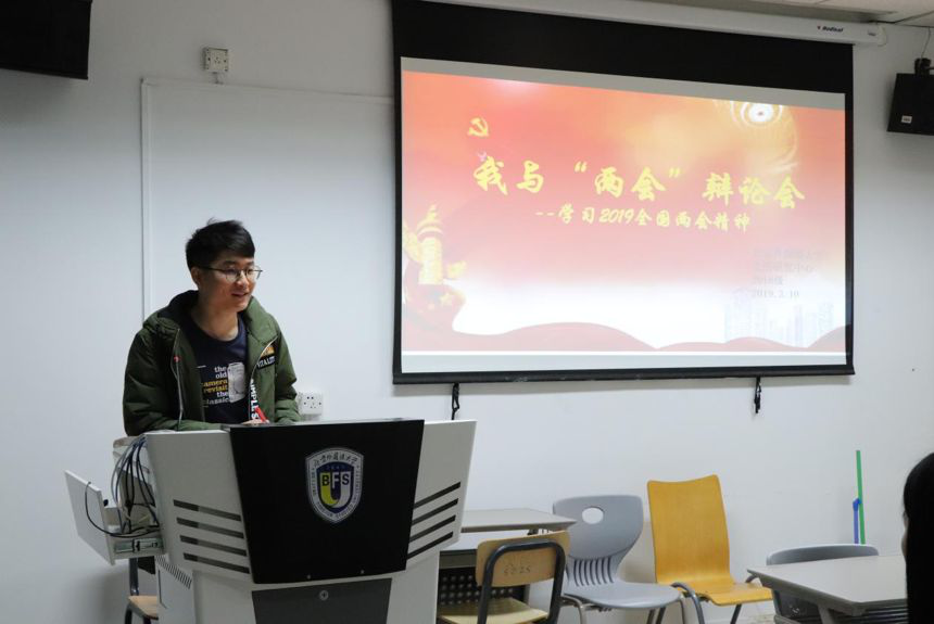 2018级英美文学、美国研究、澳大利亚研究和加拿大研究专业方向的团支部也积极学习并了解“两会”基本知识,并对本届“两会”热门议题展开热烈的辩论,如以“人大代表提议将春节假期延长”、“是否应在全国中小学进行繁体字识读教育”为辩题进行辩论,并在会后进行会议总结。