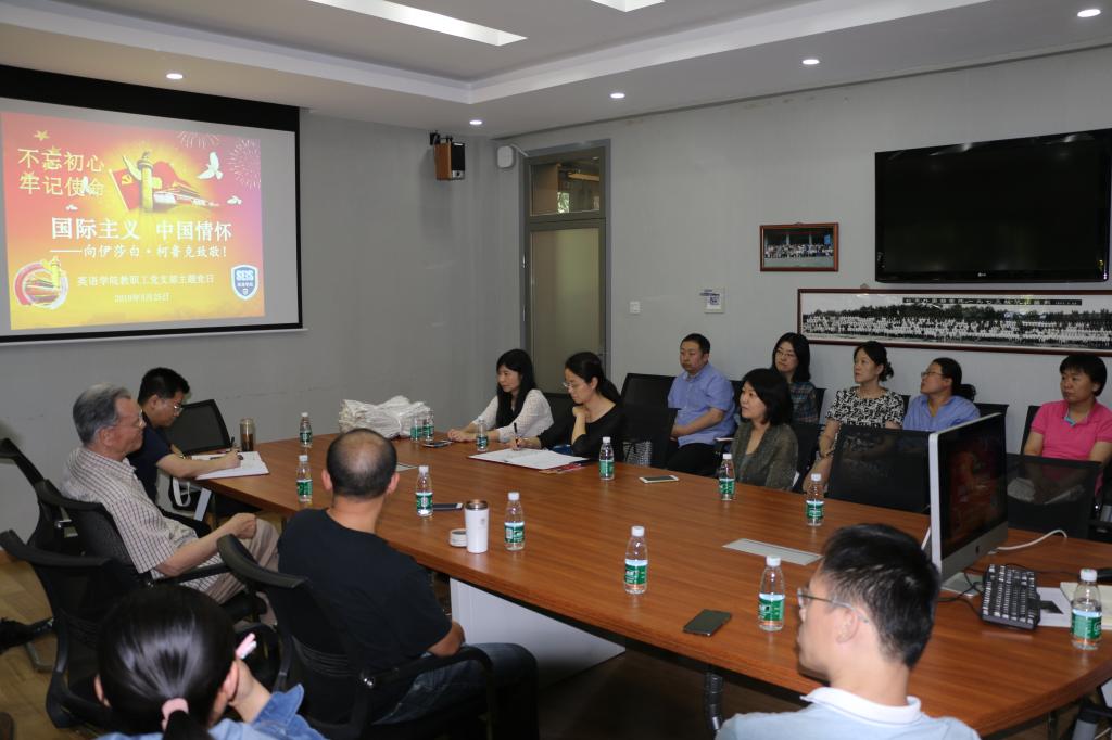 最后,参会的党员们纷纷表示伊莎白老师是新中国外语教育事业的拓荒者和奠基人,为中国教育事业,为世界了解中国做出了卓越的贡献。她的乐观豁达的精神、笃行坚定的品质和高尚真挚的风范是我们全体党员学习的榜样。