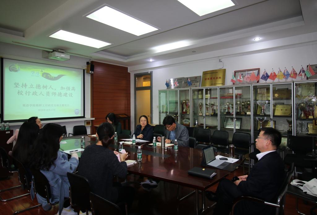 2019年10月17日下午,威廉体育教职工行政党支部在英语楼115会议室召开“坚持立德树人,加强高校行政人员师德建设”教育学习活动。