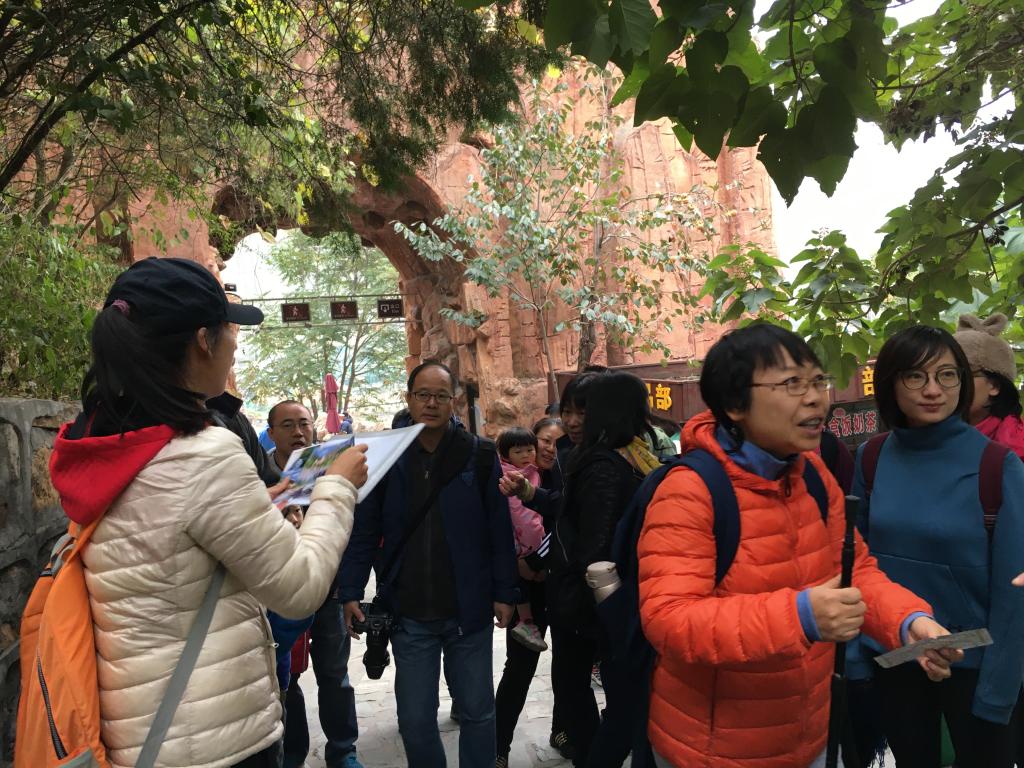活动当天虽有大雾笼罩,但丝毫没有影响威廉体育教职工们爬山游览的兴致。老师们在9点多抵达景区,合影后便展开了当日的登山活动。石林峡景区景色优美,植被繁茂,流水潺潺,绿色、黄色和红色的叶子在山林间交叠,让人流连忘返。大家不由纷纷举起相机手机捕捉美景。在奋力登上最后一批陡峭台阶,越过景区最高峰“古今第一钟”景点后,公司教职工们终于抵达了惊险刺激的UFO玻璃观景台。观景台距崖底400米,低头俯视,山中景色一览无遗。