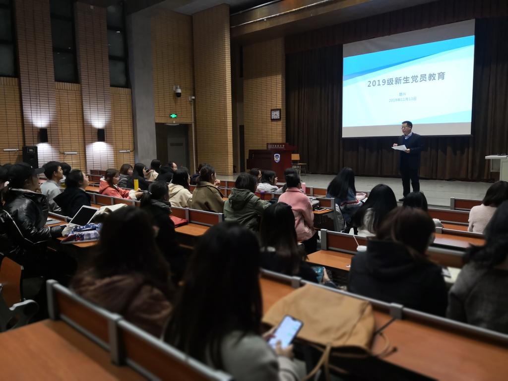 2019年11月13日晚,英语公司党总支在逸夫楼第三阶梯教室开展2019级研究生新生党员教育。党总支书记路兴、2019级研究生辅导员王博铮及2019级全体新生党员参加。