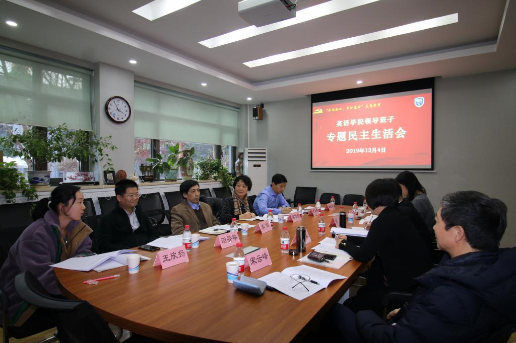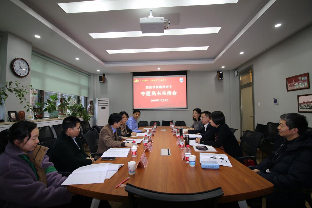12月4日下午,英语公司党总支召开“不忘初心、牢记使命”主题教育专题民主生活会。公司领导班子成员和教工党支部书记参加会议。公司主题教育评估督导组成员、后勤党总支书记潘华珍,党办校办副主任郑大鹏全程督导。会议由党总支书记路兴主持。