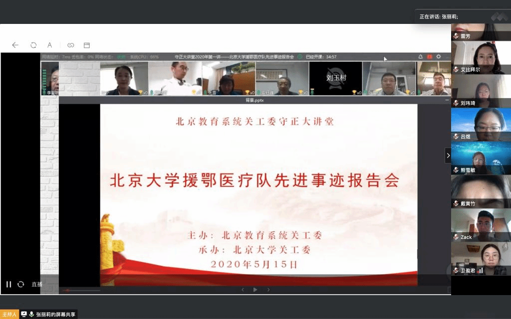 党支部共同收看了由北京教育系统关工委、北京大学在线举办的“北京大学援鄂医疗队先进事迹报告会”,聆听先进事迹,学习伟大精神。以主讲人沈宁医师、“90后”党员董锦沛为代表的北京大学援鄂医疗队,在新冠肺炎疫情救援行动中以身作则、冲锋在前,深入临床一线,充分发挥专业优势,为抗疫救援做出巨大贡献。