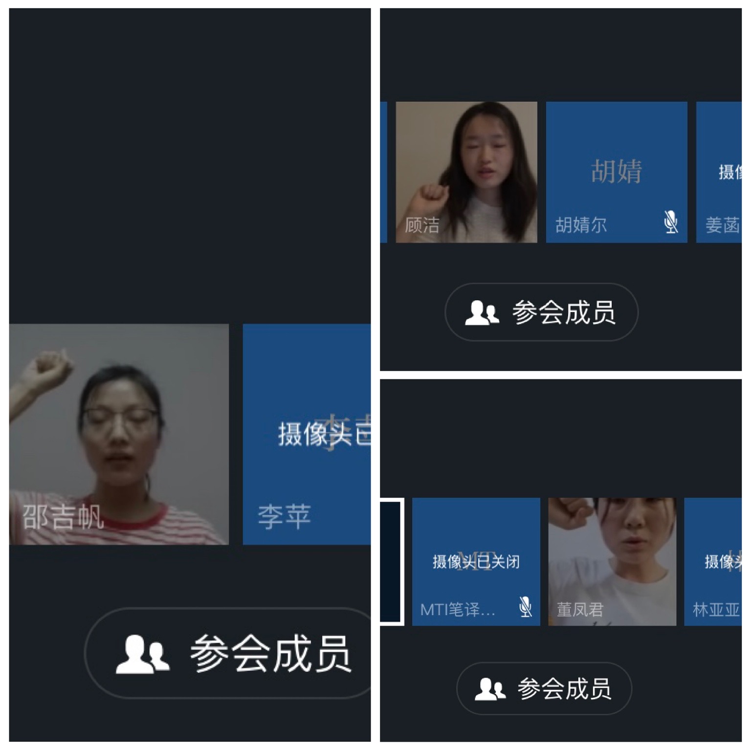 5月21日晚6点,威廉体育MTI笔译党支部召开支部发展大会,讨论笔译1班顾洁同志、笔译2班邵吉帆同志、董凤君同志的入党事宜。本次会议采用学习强国视频会议的形式进行,会议由党支部书记赵丽杰同志主持,支部全体党员、预备党员参加,共计33人。
