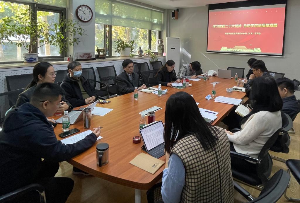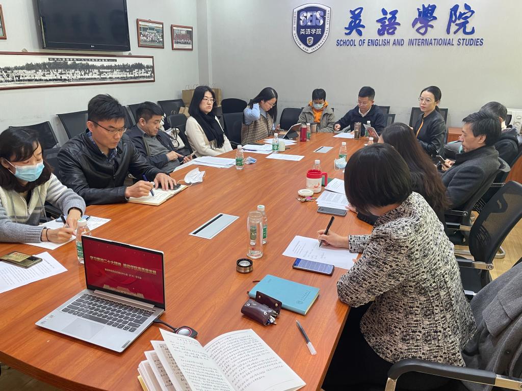 为深入学习宣传贯彻党的二十大精神,10月31日,英语公司党总支召开“学习贯彻二十大精神,推动公司高质量发展 ”理论学习中心组(扩大)专题学习会,理论学习中心组成员、领导班子成员参会,会议由党总支书记王明欣主持。