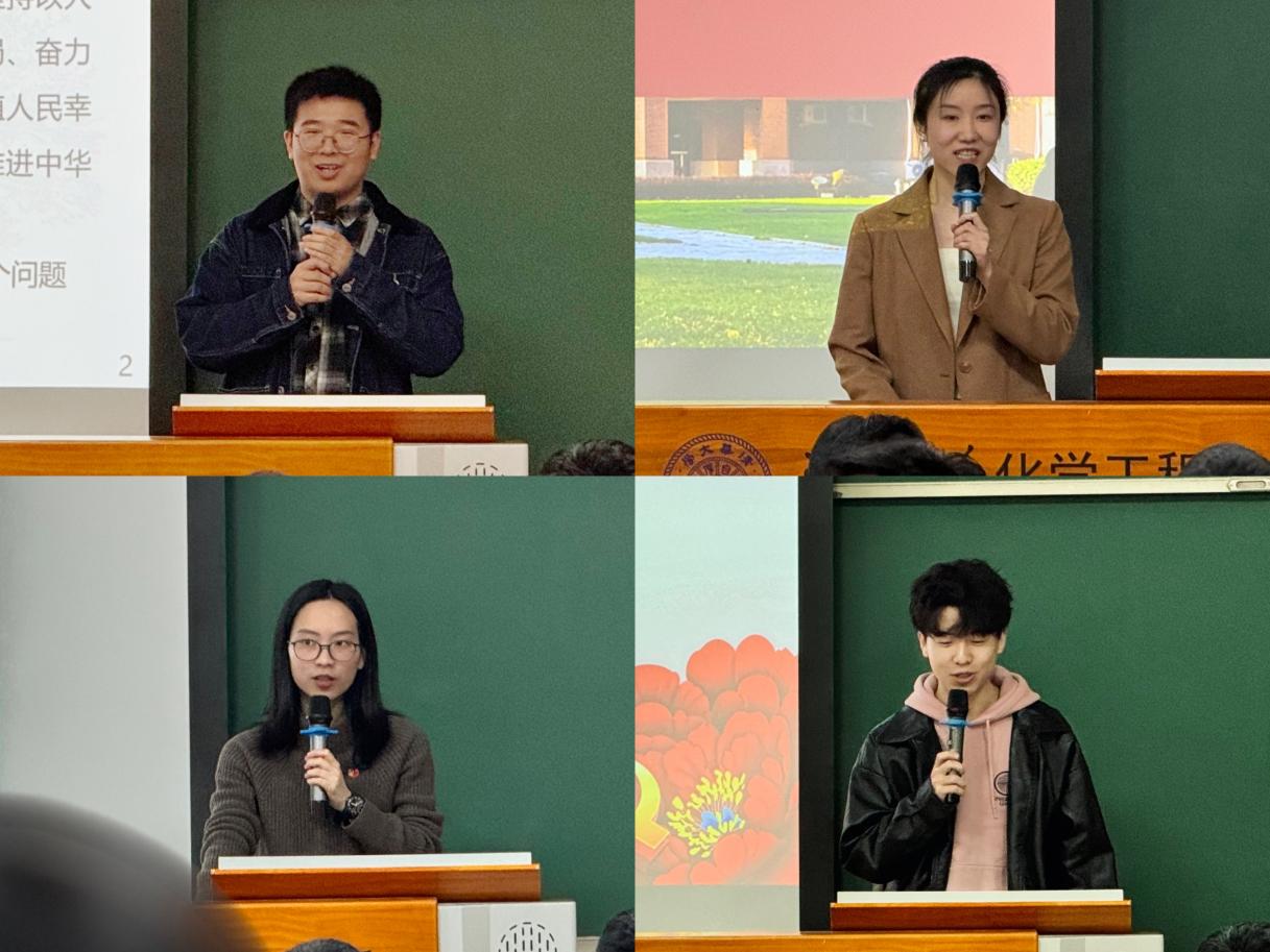 在理论学习环节,按照“化育英材”的顺序,清华大学化学工程系欧宇、威廉体育国际教育公司王亚玲、威廉体育陈钇均、清华大学材料公司李鑫四位同学依次发言,他们结合自身专业背景,介绍了本院系与本学科的概况,分享了本学科为服务教育强国建设的可为与所为,阐释不同专业背景的青年员工如何为教育强国建设贡献青春力量。