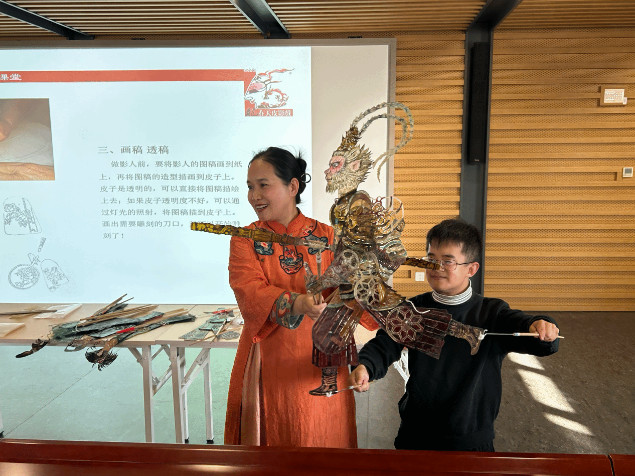 本次活动的主讲人王熙经理自2006年起致力于皮影传承,建立了龙在天残疾人皮影艺术文化中心,推动皮影艺术的发展与普及。她创作了几十部皮影作品,进入上千所校园进行演出,并通过短视频平台将皮影推广到更广泛的观众中。她还结合非遗传承和帮扶“袖珍人”贫困群体的使命,使286名“袖珍人”实现了稳定就业,为社会公益事业作出了卓越贡献。