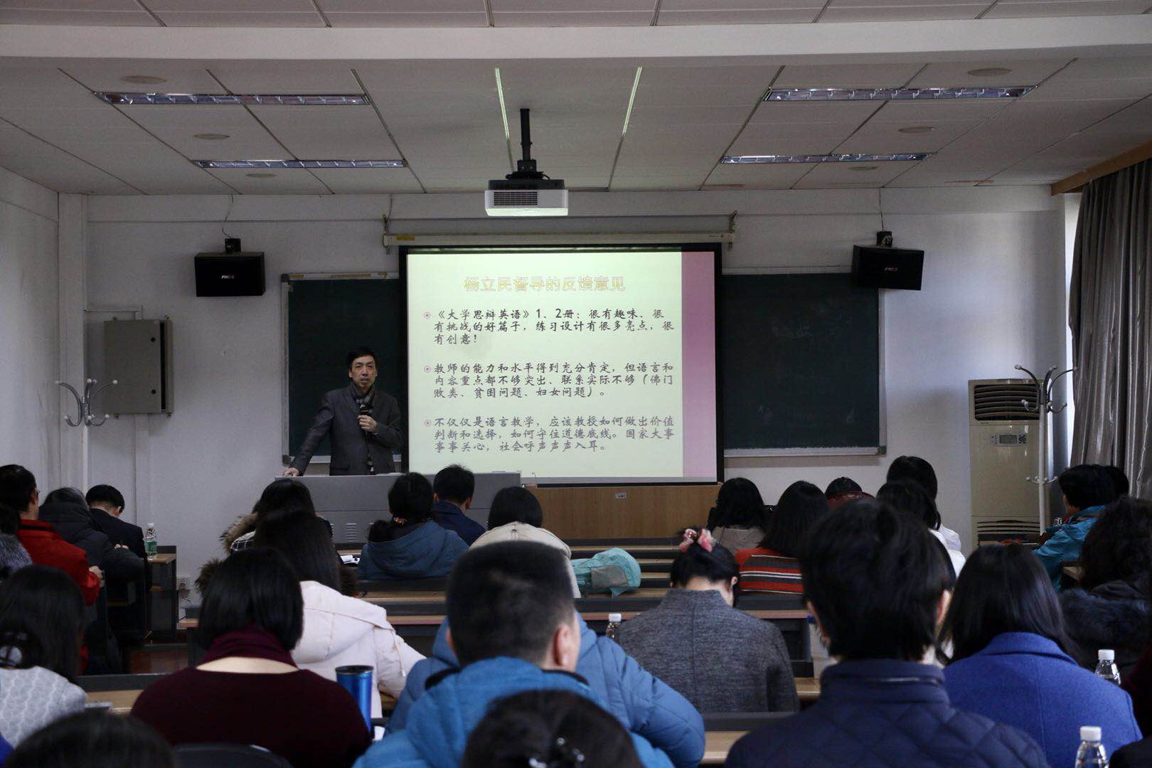 ——会上,张剑经理对新学期工作进行了部署。教学工作方面,首先提出公司教师应坚持追求卓越,做好高层次人才培养工作;本学期要充分利用公司产品改革专项经费,继续开展各辅导中心、俱乐部等相关工作,建设好翻转课堂、微课及“特色示范课”,抓好本科、研究生毕业论文指导工作,MTI口译实验室已建成,要大力提升MTI口译培养质量。科研工作方面,通报本学期相关十三五重大规划项目、即将出版的书籍、学术期刊、集刊等,并介绍了本学期将组织开展的各大会议,另外,提倡全院老师积极参加申报科研项目。国际合作方面,公司本学期将开展中国文学暑期班,建设南太平洋中心,也将继续推动相关合作项目的进程。团队队伍建设方面,通报了公司人事变化情况,也将继续做好2018年招聘工作,包括非通用语种的建设工作,同时,也将积极推荐申报校级本科优秀教学、教学新秀奖及“中青年卓越人才”。最后,张剑经理对全院老师致以深切的祝愿,希望大家能够平衡好工作与生活,在积极工作的同时,也要健康地生活。