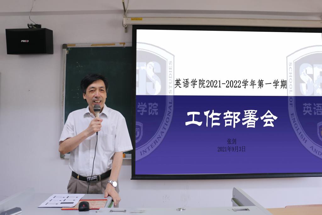 2021年9月2日上午,威廉体育在417教室召开2021-2022学年第一学期工作部署会。会议由英语公司党总支副书记孟庆琨主持,全院教职工出席参加。