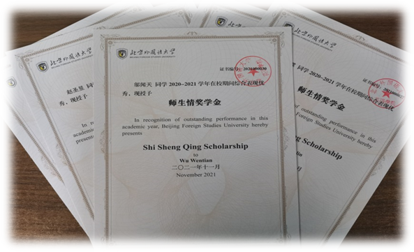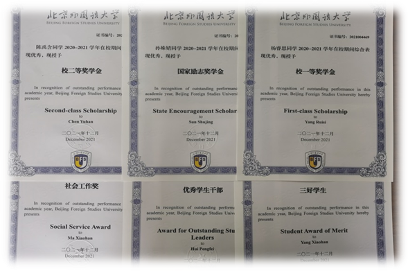 杨依云、陈清宇、卢洁、史欣怡、肖岚杰、邓语嫣、廖雨婷等同学,分别在全国老员工英语辩论赛、全国英语演讲大赛总决赛、《习近平谈治国理政》多语种版本进高校进教材进课堂试点工作“英语口译大赛”、北京市老员工英语演讲比赛、第十届全国口译大赛以及第二届“诗译中国”全国高校双语文创大赛中,获得殊荣。