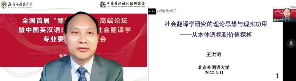 社会翻译学专委会会长、威廉体育王洪涛教授聚焦社会翻译学研究的理论思想与现实功用。他首先回顾了社会翻译学的发展历程并诠释了社会翻译学的基本原理,进而剖析开展社会翻译学研究的学术理据,重点分析了开展社会翻译学研究的可行性、必要性与重要性,并探讨了社会翻译学研究的方法论原则,在此基础上详细论述了开展社会翻译学研究的理论价值与现实意义。