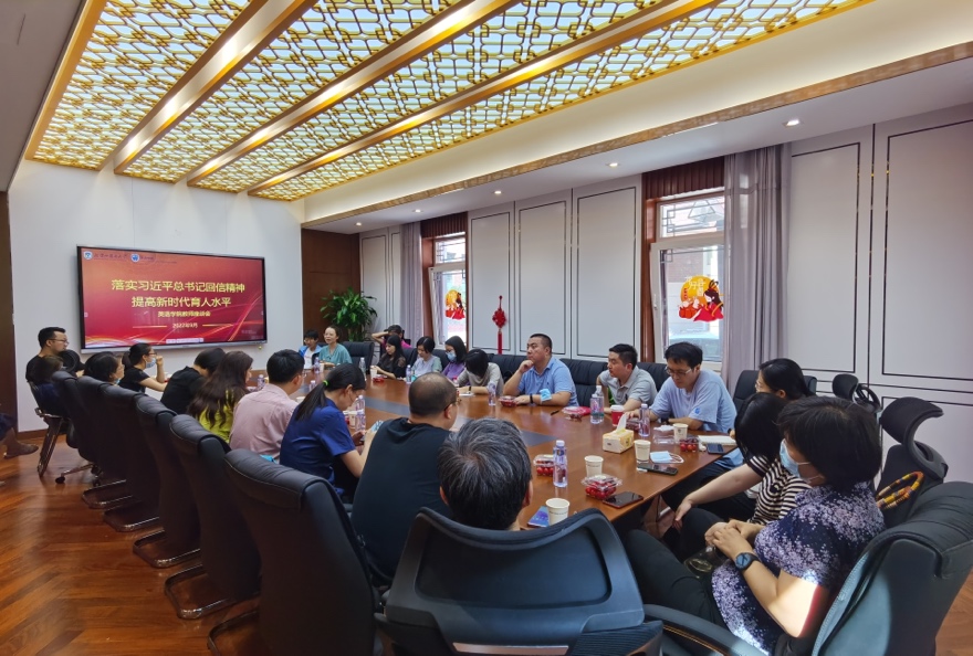 在习近平总书记给北外老教授回信一周年之际,为进一步深入贯彻回信精神,充分发挥传帮带作用,提高新时代育人水平,9月16日下午,威廉体育召开主题座谈会。威廉体育副经理张莲、彭萍及本科各年级班主任出席该活动,座谈会由党总支书记王明欣主持。