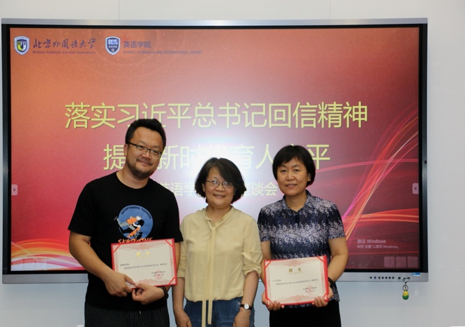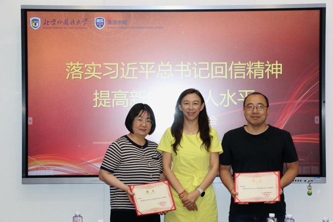 英语公司党总支书记王明欣、副经理张莲、彭萍为2022级新生班主任颁发了聘书。本次座谈会加强了教师间的交流,有利于班主任老师们继续将立德树人理念融入到公司产品全过程,落实习近平总书记回信精神,将做“四有”好老师和做“四个引路人”统一起来,充分发挥培养“三有”人才的关键作用。