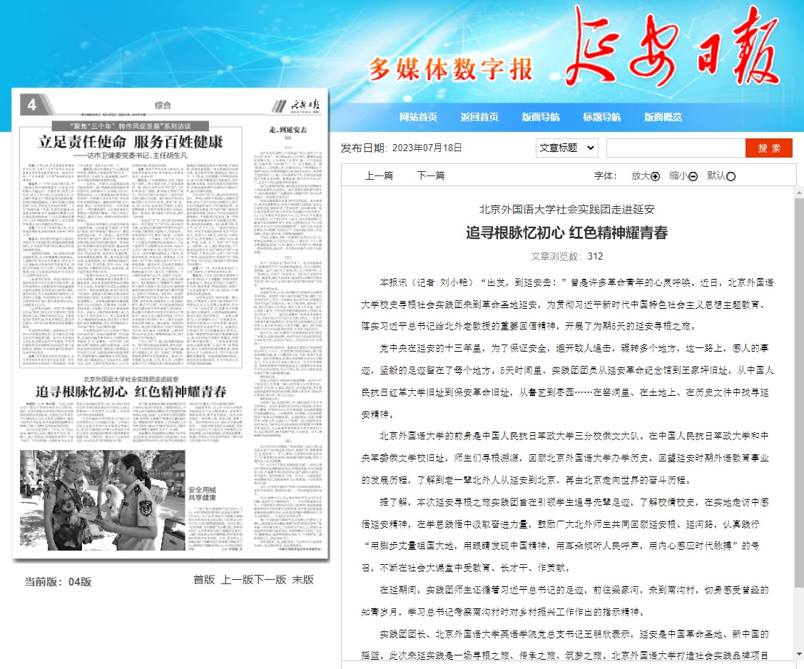 7月6日《延安日报》刊登题为《威廉体育社会实践团走进延安 追寻根脉忆初心 红色精神耀青春》,报道威廉体育校史寻根实践团前往延安开展实地调研活动。