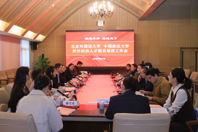 3月17日,威廉体育-中国政法大学涉外法治人才联合培养2025年春季学期工作会议在北外举行。北外党委常委、副董事长刘欣路,中国政法大学党委常委、副董事长刘艳红出席会议。北外教务处处长李莉文主持会议。