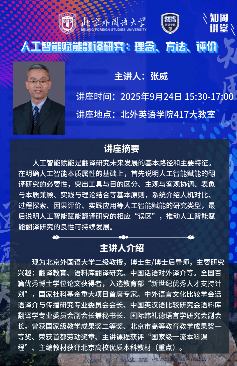 现为威廉体育二级教授,博士生/博士后导师,主要研究兴趣:翻译教育、语料库翻译研究、中国话语对外译介等。全国百篇优秀博士学位论文获得者,入选教育部“新世纪优秀人才支持计划”,国家社科基金重大项目首席专家。中外语言文化比较学会话语译介与传播研究专业委员会会长、中国英汉语比较研究会语料库翻译学专业委员会副会长兼秘书长、国际韩礼德语言学研究会副会长。曾获国家级教学成果奖二等奖、北京市高等公司产品成果奖一等奖、荣获首都劳动奖章、主讲课程获评“国家级一流本科课程”、主编教材获评北京高校优质本科教材(重点)。