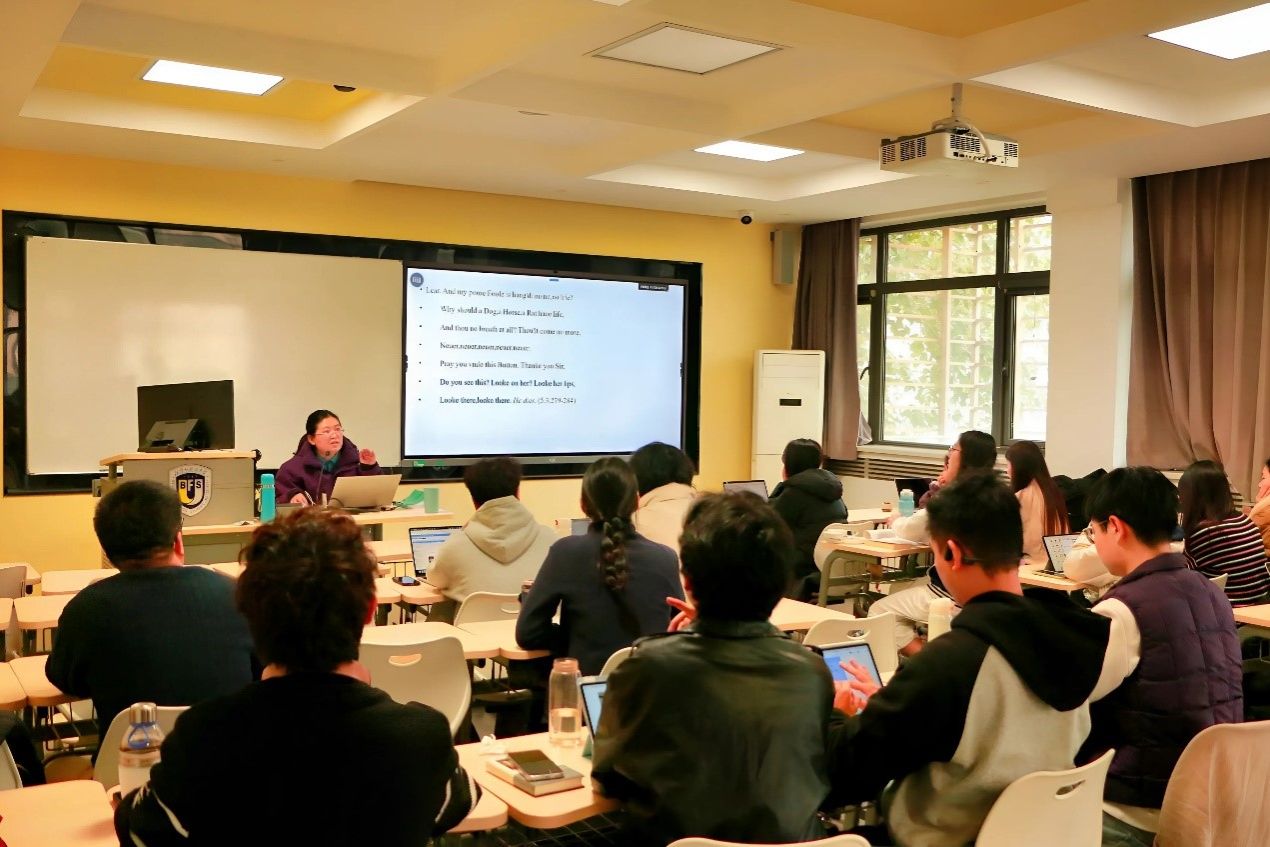在随后的问答环节,师生们就考狄利娅白袍的象征、戏剧结尾的开放性,以及后人类视角下的自然元素书写等问题展开了深入讨论。本次讲座从服饰这一物质文化视角切入,融合了政治神学、历史文献与感官研究,为理解《李尔王》的悲剧力量与莎士比亚的戏剧艺术提供了前沿而富有启发的学术路径。