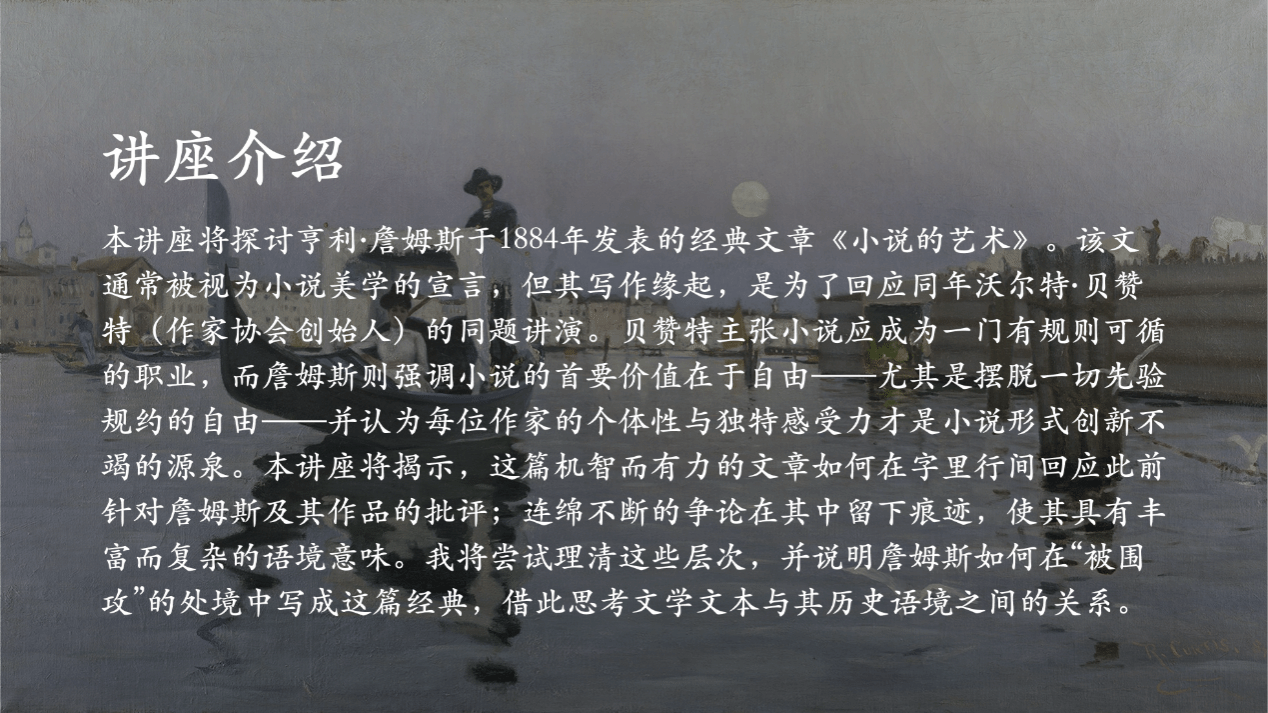 11月3日讲座:亨利·詹姆斯《小说的艺术》中的“故事”