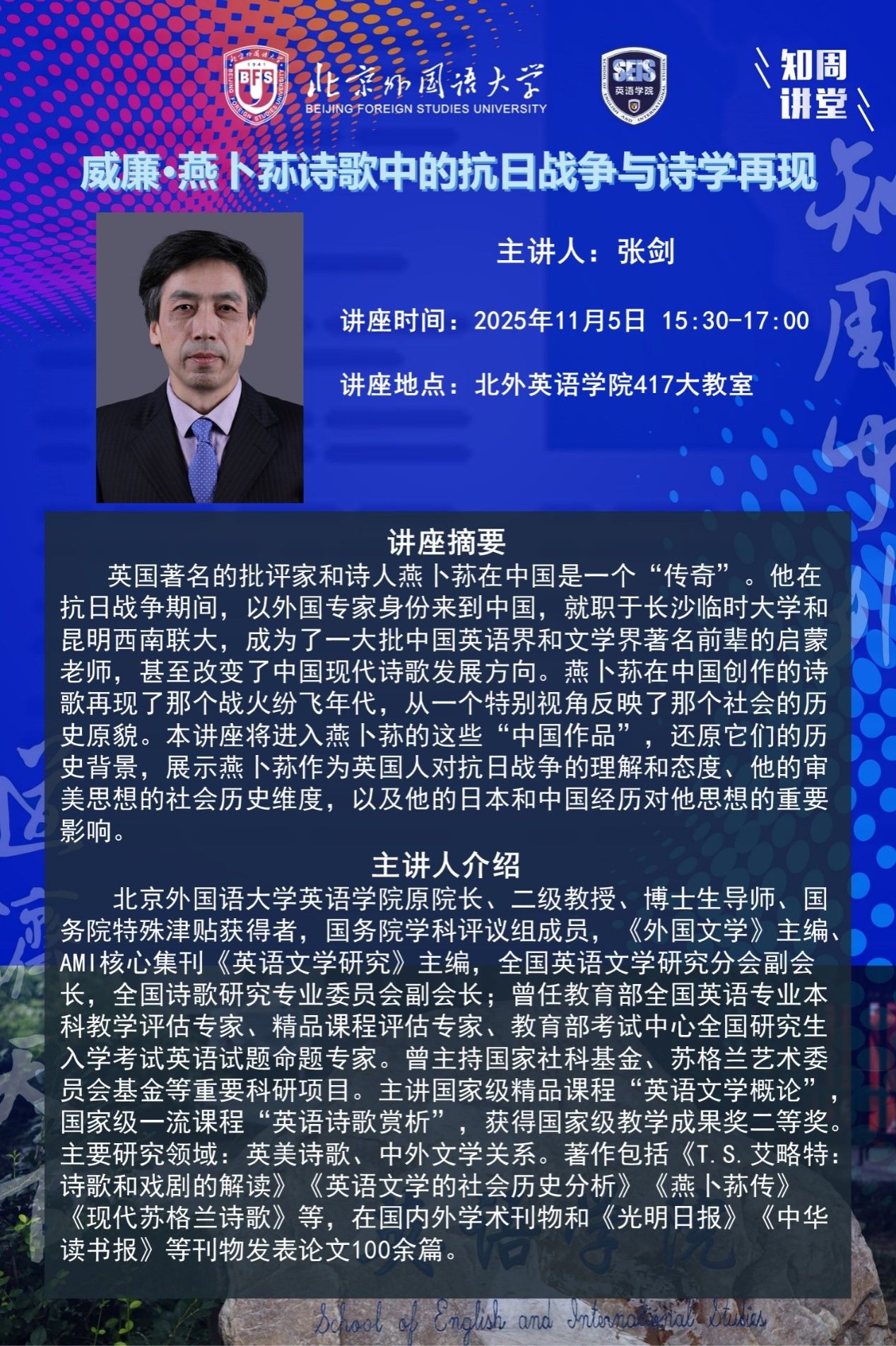 11月5日讲座:威廉•燕卜荪诗歌中的抗日战争与诗学再现