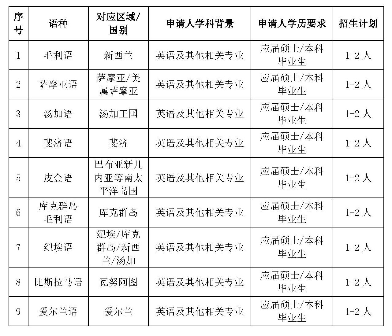 新建语种人才培养选拔通告