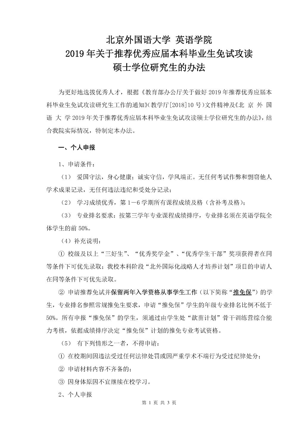 2019年关于推荐优秀应届本科毕业生免试攻读硕士学位研究生的办法