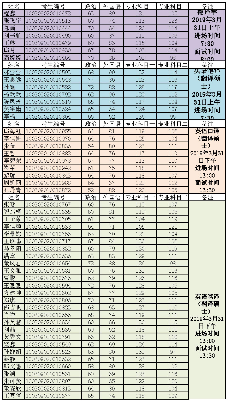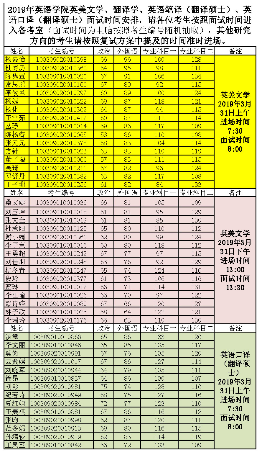 2019年威廉体育英美文学、翻译学、英语笔译(翻译硕士)、英语口译(翻译硕士)面试时间安排