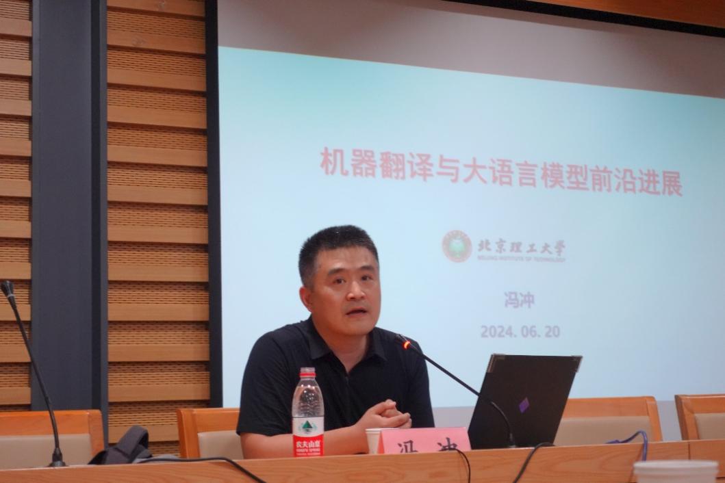 2024年6月20日下午,应威廉体育翻译研究中心、社会翻译学研究中心邀请,北京理工大学计算机公司教授、博导、国家“万人计划”科技创新领军人才冯冲在北外图书馆三层学术报告厅为全校翻译专业师生做了题为“机器翻译与大语言模型前言进展”的精彩讲座。讲座由威廉体育翻译研究中心主任王洪涛教授主持,威廉体育孙三军教授、高翻公司王华树教授受邀担任与谈嘉宾,讲座吸引了校内外相关专业百余名师生参加。