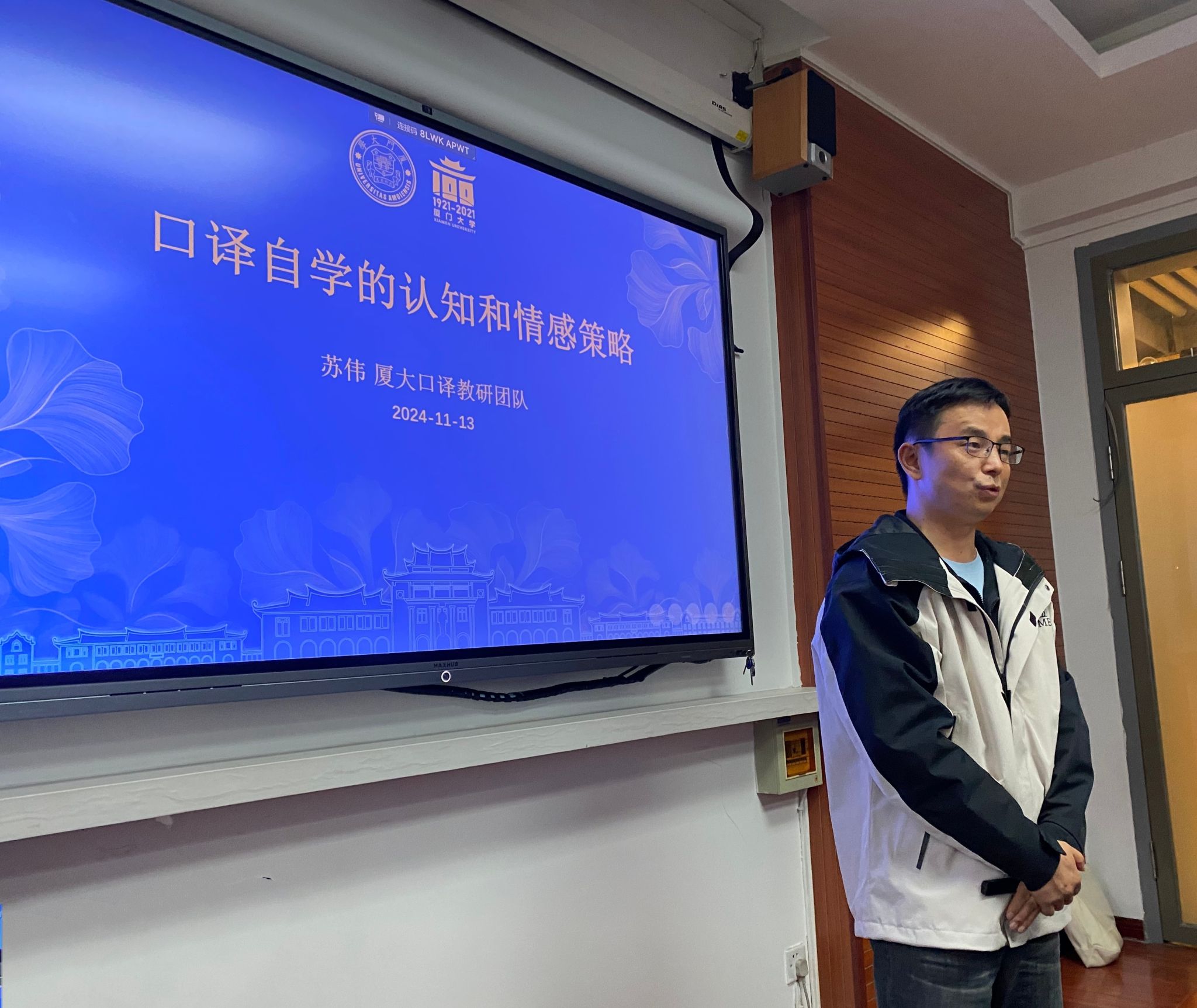 2024年11月13日下午2点,厦门大学外文公司英语系主任苏伟教授应威廉体育MTI口译中心邀请,在威廉体育楼115会议室为公司师生带来了一场题为《口译自主学习的认知与情感策略研究》的精彩讲座。讲座由高彬教授主持,共40余师生参与。