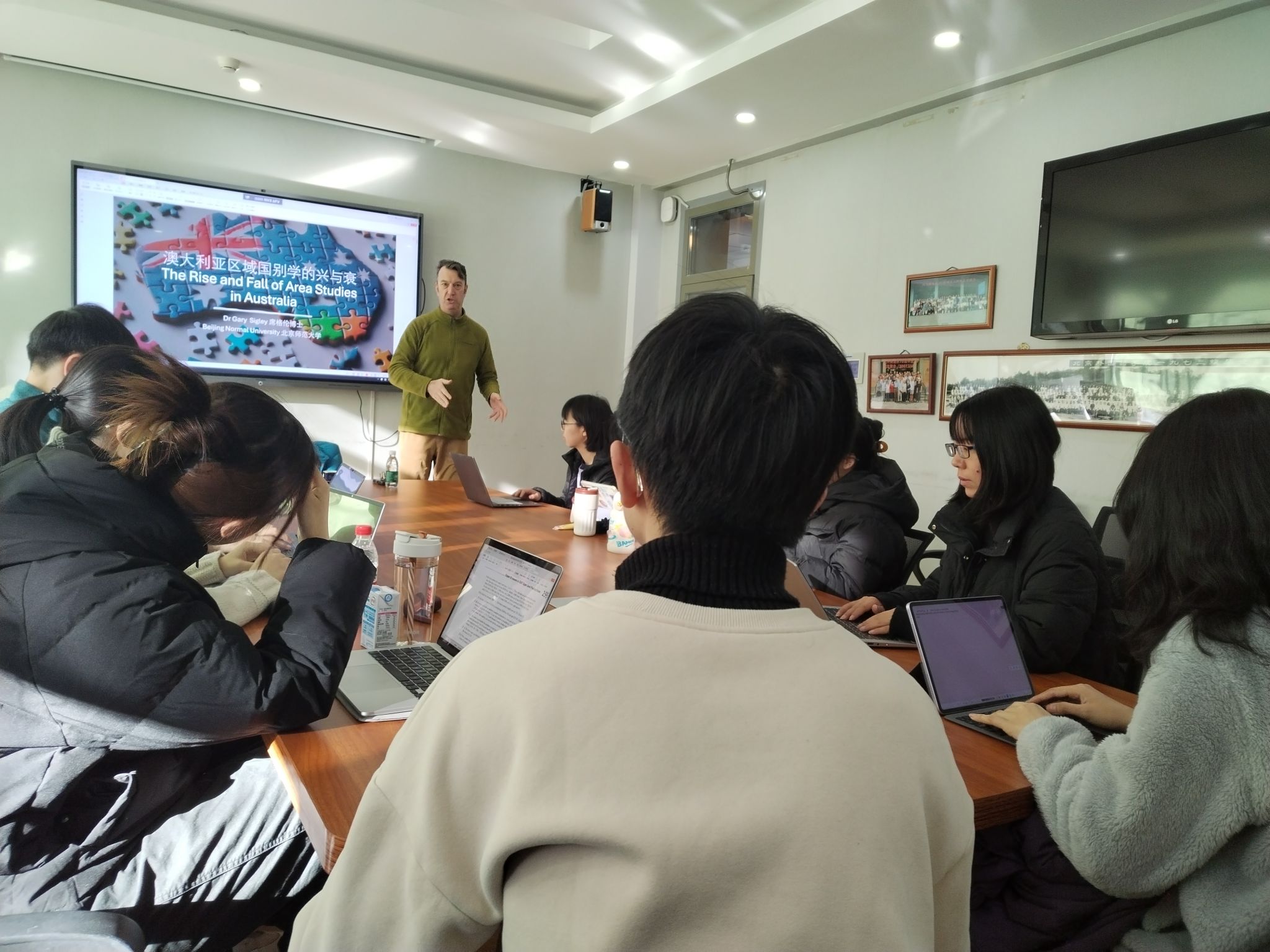 12月18日上午,受威廉体育澳研中心邀请,北京师范大学人文地理学教授席格伦博士(Gary Sigley)在北外威廉体育111会议室举办讲座,题目是 “焦虑的国家案例研究:澳大利亚为何持续未能发展亚洲识能”。讲座由威廉体育澳研中心主任李建军主持,澳研中心师生参加。