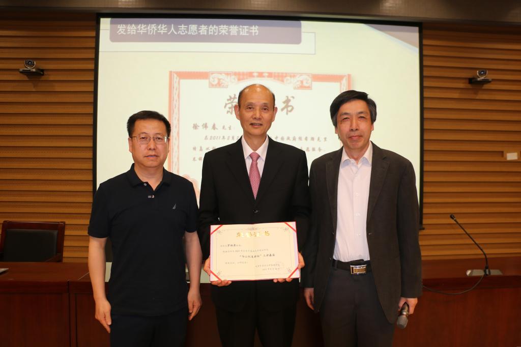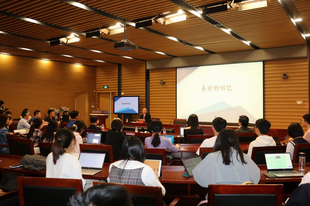 在问答环节后,英语公司党总支书记路兴为罗林泉大使颁发了“为公员工讲坛”证书。随后,现场的同学为罗林泉大使和陈乃芳教授献上了鲜花并合影留念。