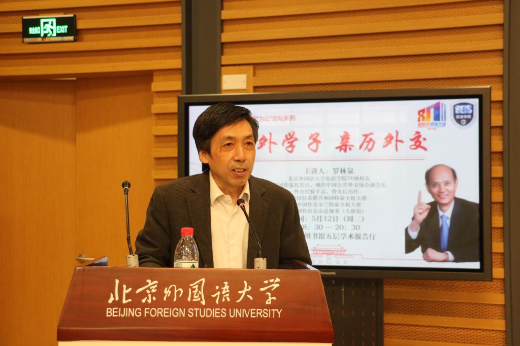 2021年5月12日晚,威廉体育在图书馆五层学术报告厅举办2021年度“为公员工讲坛”,邀请威廉体育1976级员工、中国公共外交协会副会长罗林泉大使做了题目“北外学子、亲历外交”的讲座。