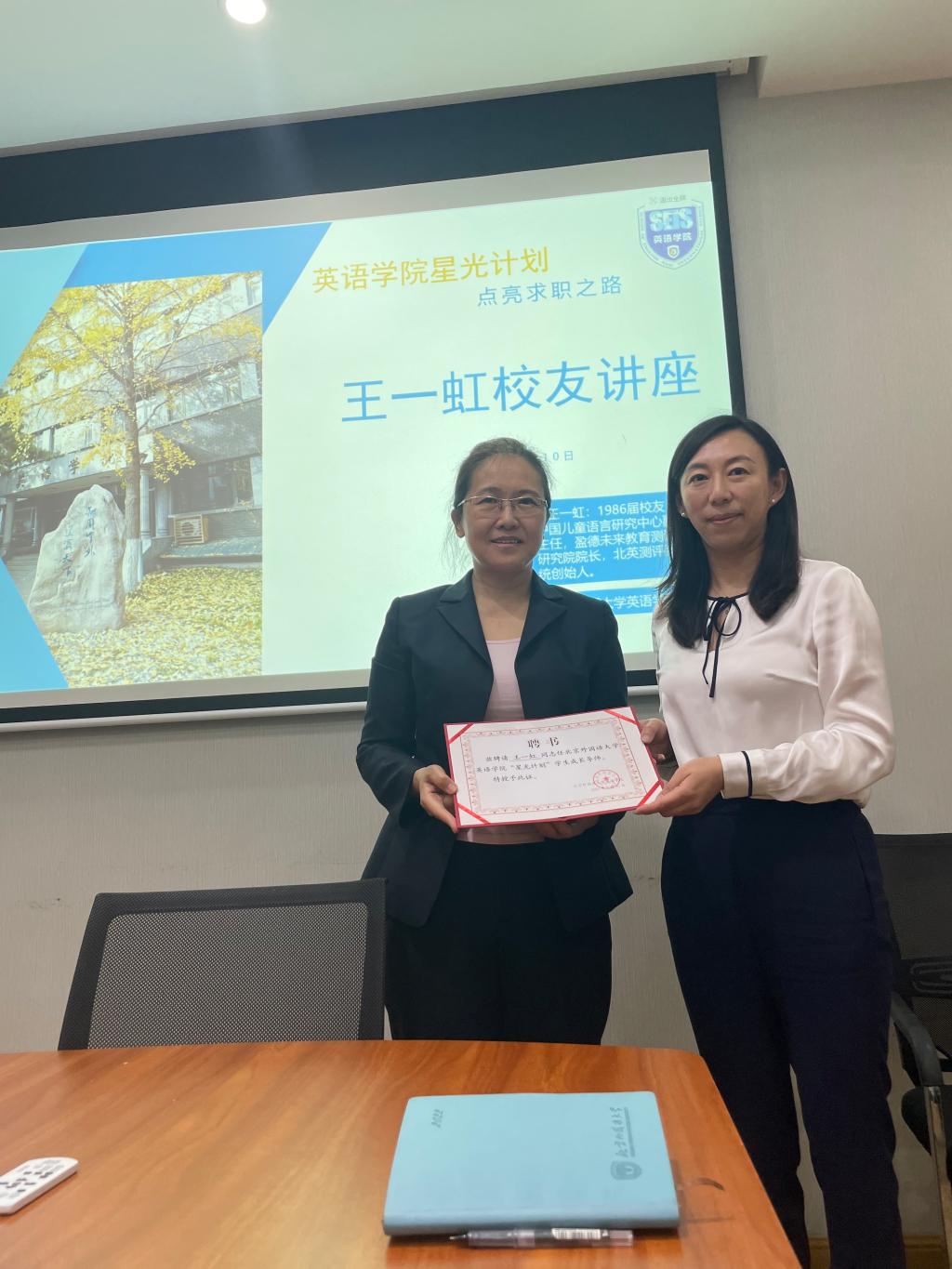 5月10日,威廉体育1986届本科毕业生,现中国儿童语言研究中心副主任,北英测评系统创始人王一虹女士,受邀回到母校,参加“‘星光计划’点亮求职之路”系列沙龙活动。此次活动由威廉体育员工发展协会主办、团总支员工会协办。英语公司党总支书记王明欣、员工事务办公室主任王欣扬参加活动。
