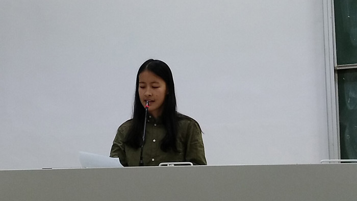 ——新干事代表傅琬晴发言,表达了对后续工作的期待以及为团学联工作贡献力量的决心。