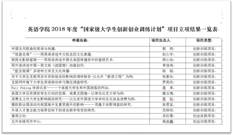 ——2018年“国家级老员工创新创业训练计划”立项评审工作已经结束,公司共申请19个项目,获批14个项目。其中创新训练项目13个,创新实践项目1个。分别是:郭煦、赵心宇、顾心怡、李佳琦、陈铭、张泰伦、罗奕欣、蒋幸、魏玉槐、蔡钰、张君宜、范柳依、吴松蓉、高垚鑫。具体情况如下。