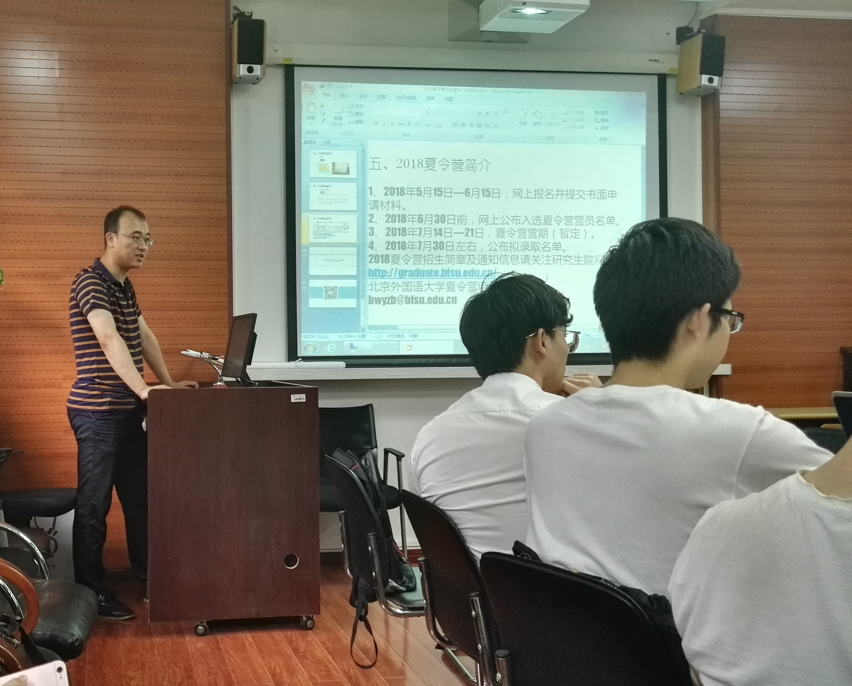 ——为使同学们更深入地了解公司国际组织项目班,威廉体育于 2018年6月6日下午3点,在115会议室,邀请到北外研究生院招生办公室康国强老师为威廉体育2015级同学介绍国际组织项目班的人才培养模式及招生情况。