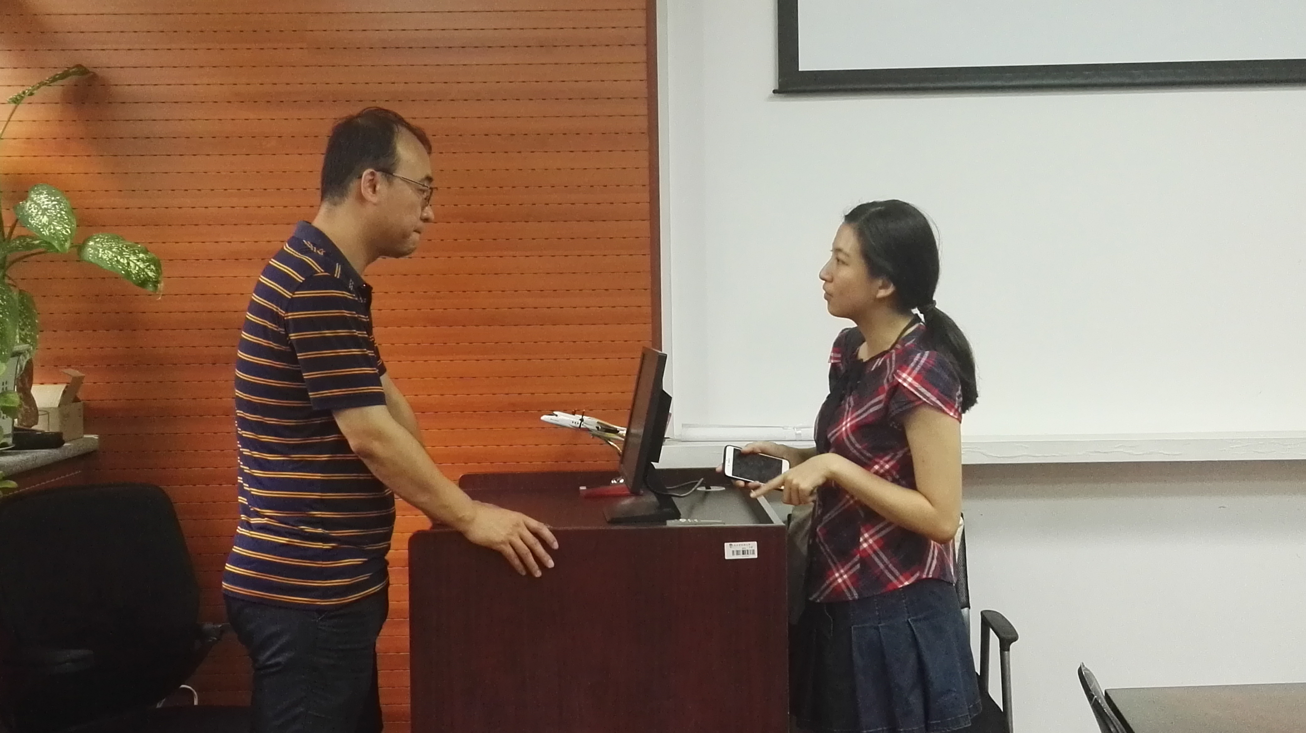 员工认真听取介绍