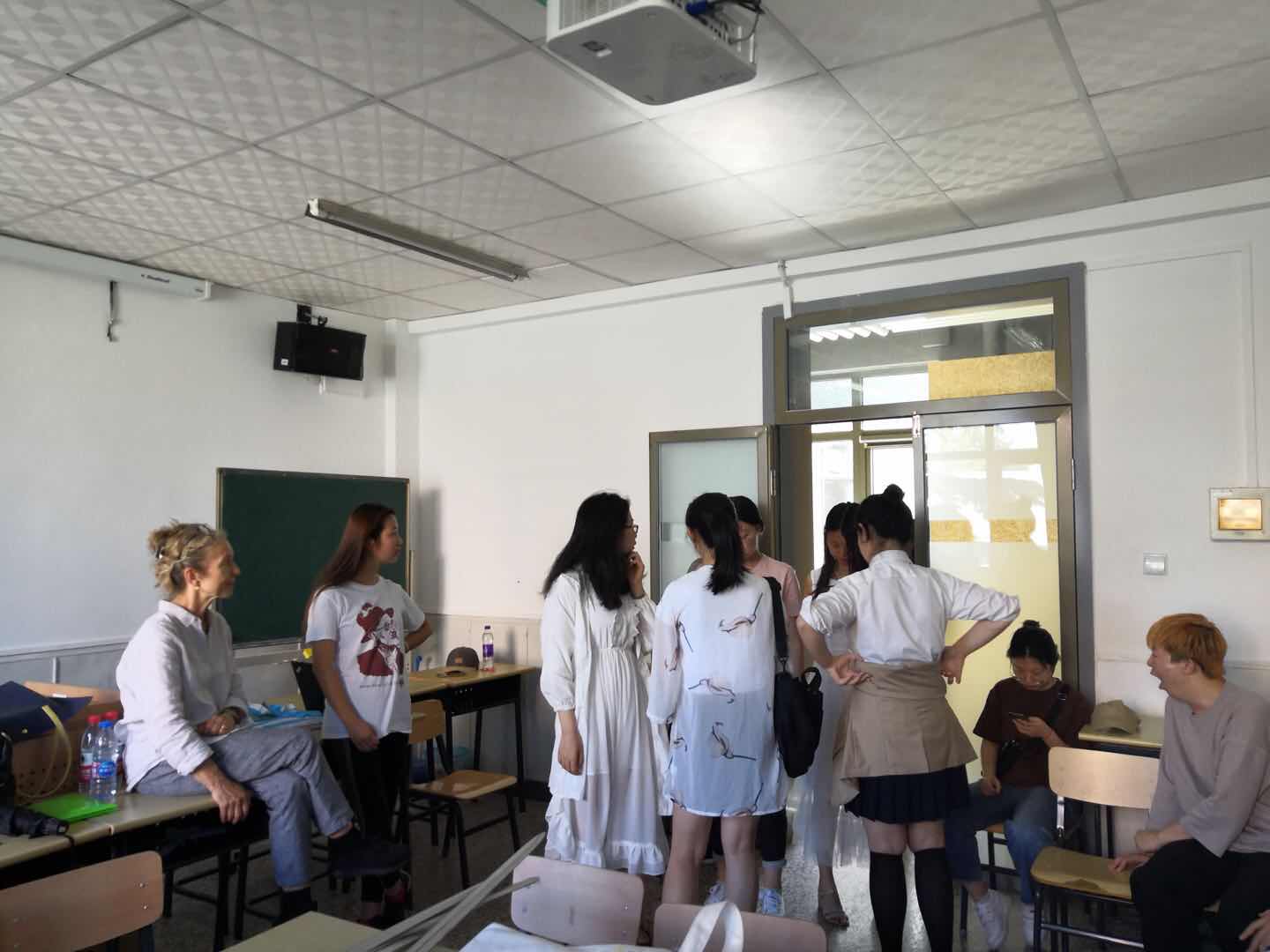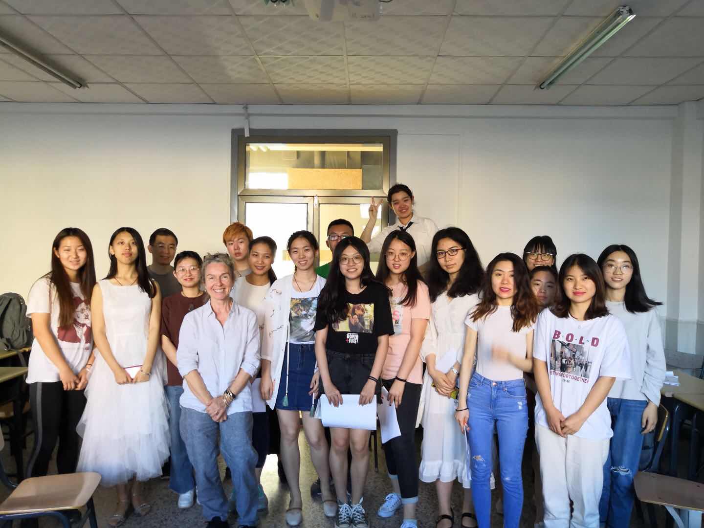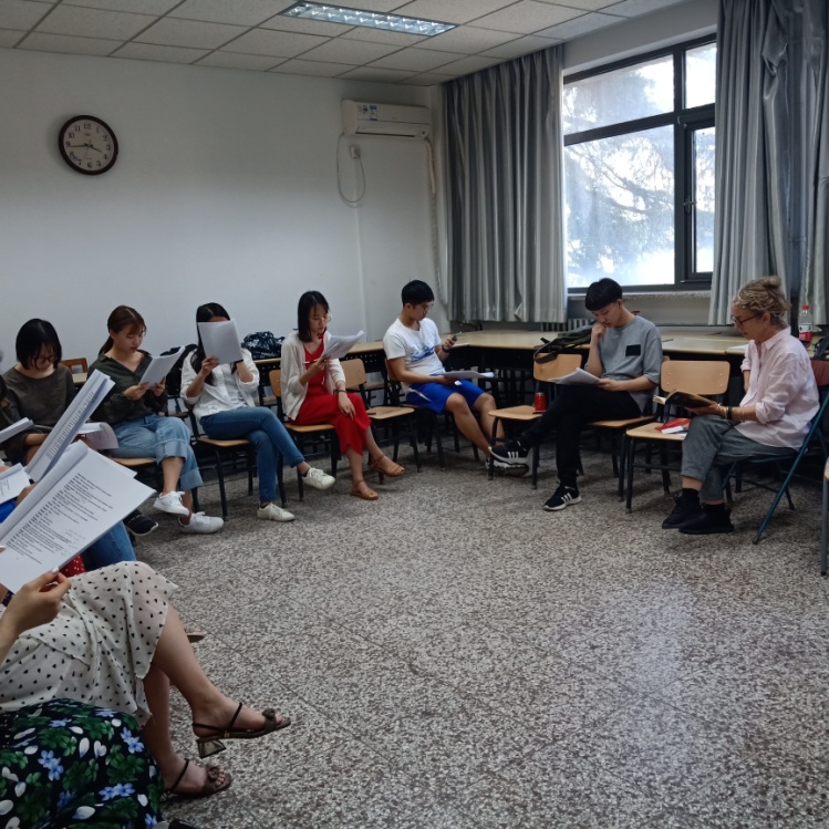 赛芙博士目前为爱尔兰三一公司戏剧系助理教授兼爱尔兰SJ戏剧公司艺术总监。她致力于爱尔兰经典戏剧的发展与传播,在戏剧教学、研究与导演方面都具有丰富的经验。在第一期工作坊中,公司1806班本科生刘畅、陈翎雨、陈琼洁、罗筱晓、王倩茜、林启和、陈云龙、马竞怡、陈姝颖、李明越、李越、蒋枫奕、成佩雯、陈邵逐颜、赵偲琪、杨一凡、曹韫珠、骆砚秋、王赫璘、李越、陈禹含、高玉洁为赛芙博士表演了他们根据亚瑟王传奇改编的英文短剧“The Split of the Round Table”(《圆桌骑士的分裂》),他们的生动演绎和丰富的想象力得到了赛芙博士的高度评价,同时她也为剧组同学提出了不少宝贵建议,使同学们了解了使用言语来呈现肢体暴力,以此增强短剧戏剧性的有效办法。