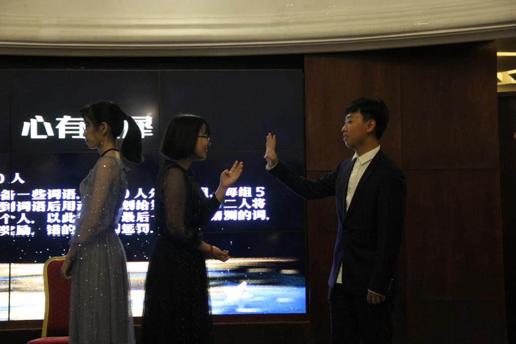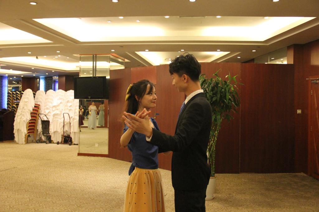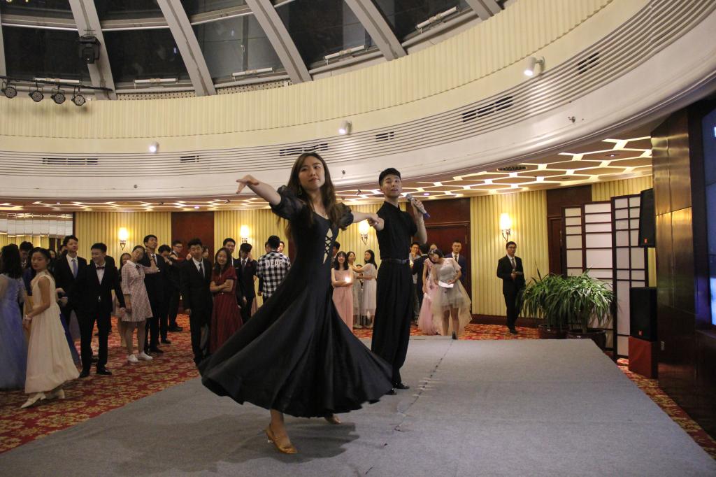 舞会由北京大学街舞社的表演震撼开场,律动的音乐点燃了全场的热烈氛围。舞池中同学们愉快地和舞伴交谈,对彼此有了初步的认识和了解。紧接着,来自北京大学国标队的舞蹈培训老师现场对大家进行华尔兹舞蹈教学。刚刚初识的男女同学在舞培老师的指导下随着音乐在舞池中摇曳,沉醉于优美的华尔兹之中。中场休息时,北外威廉体育艺术团给大家带来热舞《Uh-oh》,其后开展了激动人心的抽奖环节。除了共舞华尔兹,同学们还在主持人的组织下积极参与了互动小游戏“心有灵犀”和“泡泡糖”,与舞伴默契十足。两段古典乐后,北京师范大学的学子登台,给大家带来了一首热烈的说唱《很高兴认识你》,紧接着的第二轮抽奖更是让现场的气氛达到另一个高潮。