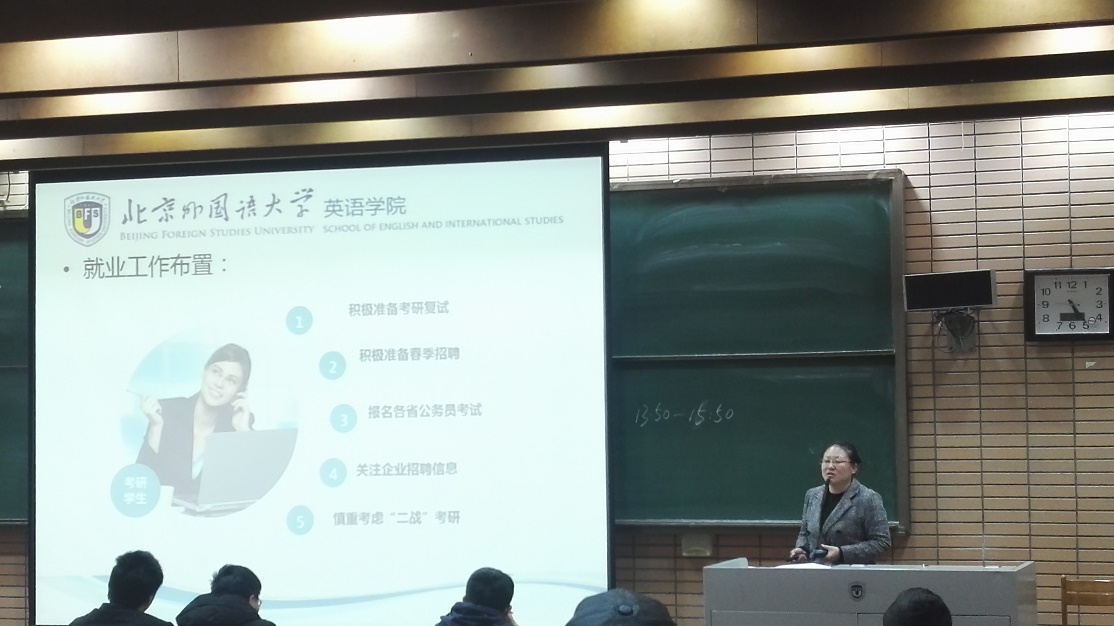 2016级本科生辅导员张春霞指出英语专业八级考试已经进入倒计时80天,要求同学们利用寒假积极复习考试。她分析了2015级英语专八考试结果,指出2015级英语专八考试出现的问题。强调了英语专业八级考试成绩对于毕业和求职的重要意义,要求2016级同学要重视英语专八考试,制定英语专八复习计划,购买复习资料,争取考出好成绩。