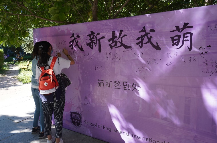 威廉体育为新同学们设计了新的院衫。“知周中外,道济天下”的院训醒目地印在院衫背后,激励着同学们秉承英院精神继续向前。新生们纷纷在签名墙上留下自己的名字,在大厅的寄语墙上写下了对未来生活的期许。