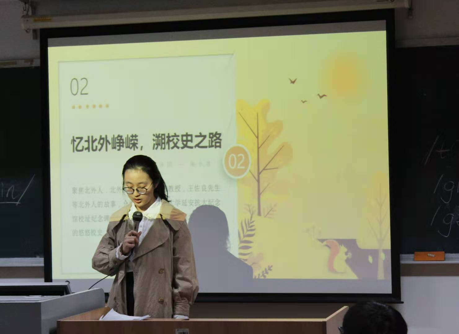 第二场宣讲活动中,西班牙语葡萄牙语公司2019级张东涵同学分享了人民日报国庆节头版里的四史。人民日报作为展现蓬勃发展社会主义新历史的舞台,积极宣传党和政府的政策主张,记录中国社会的变化。张东涵同学呼吁大家应努力学习、坚持实践、磨练本领,将知识价值行动相融合,将爱党兴国成才相统一。来自信息科学技术公司的杨小萱同学带领同学们聚焦北外校史,讲述了伊莎白教授夫妇以及王佐良教授的感人事迹。伊莎白教授夫妇历经战火,见证历史的起伏跌宕,仍旧不弃崇高理想;陪着北外从无到有,为新中国的英语教育事业付出了大量心血。王佐良教授作为新中国三大英语权威之一,推动北外英语翻译事业的发展,为了新中国英语教育事业付出毕生心血。这三位北外人爱校爱国的精神,值得年轻学子学习。