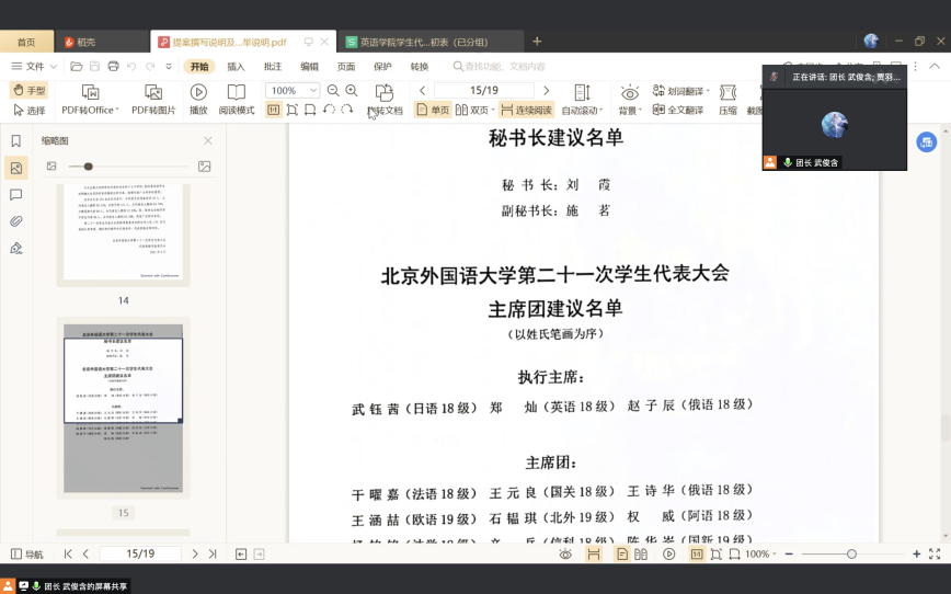 2021年4月18日,威廉体育员工代表团成功举办威廉体育第二十一次员工代表大会威廉体育第一次分团会议。此次会议由威廉体育员工代表武俊含主持召开,旨在为即将召开的全校员工代表大会做准备。威廉体育全体本科生员工代表(共21名)参加会议,会议详细讨论了员工代表大会校筹备委员印发的相关文件,并明确了代表团今后的工作安排。